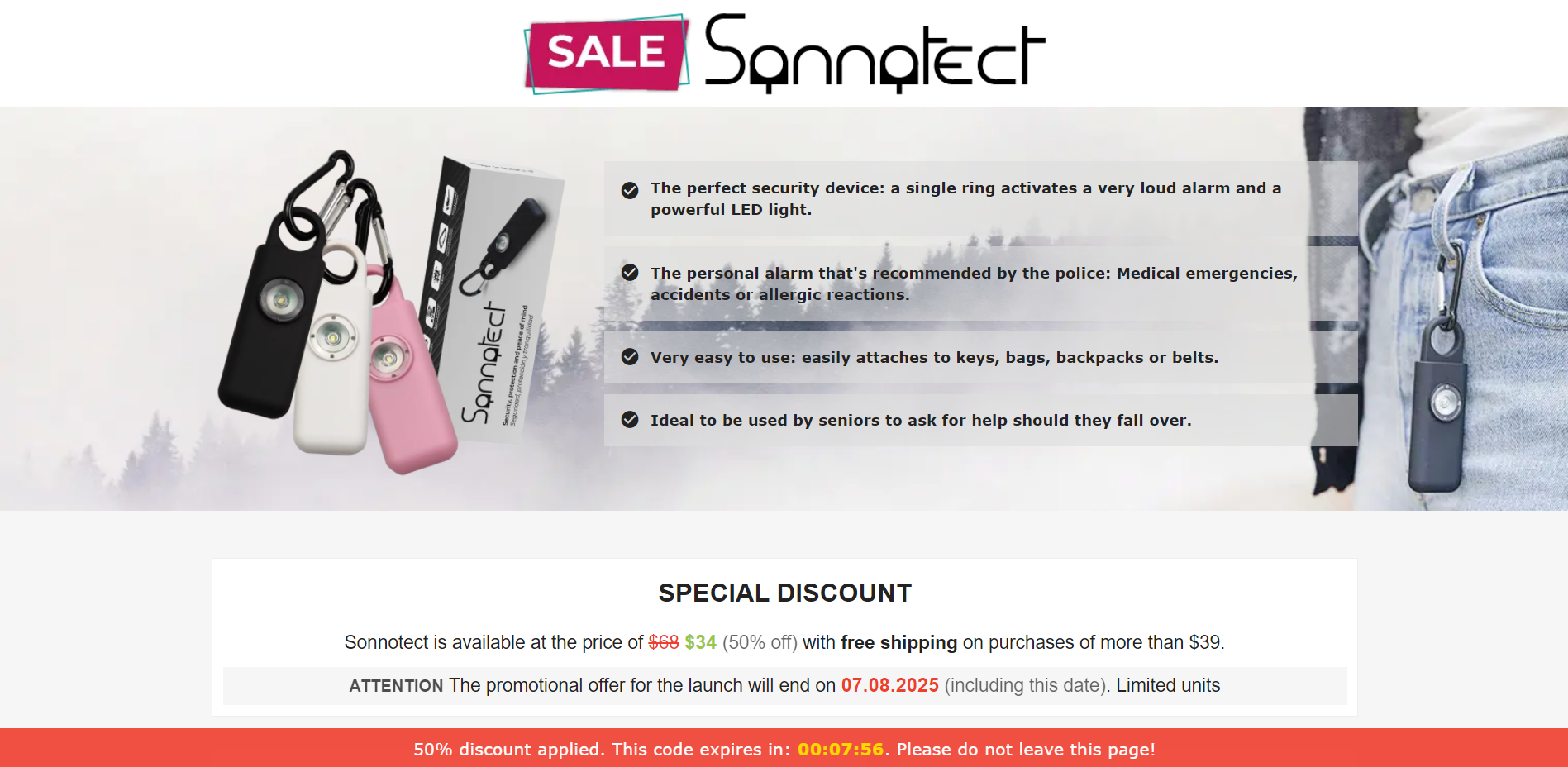 | Offer Name: | [WEB+MOB] Sonnotect – Personal Alarm /International (112 GEOs) CPS *FB/TT/Google/Taboola Pixel* [Approval Required] |
