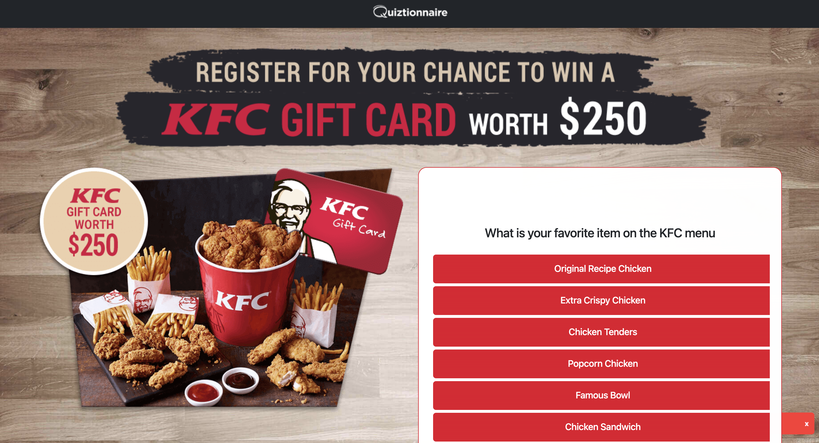 | Offer Name: | AU - Quiztionnaire - KFC Giftcard - (CPL) |