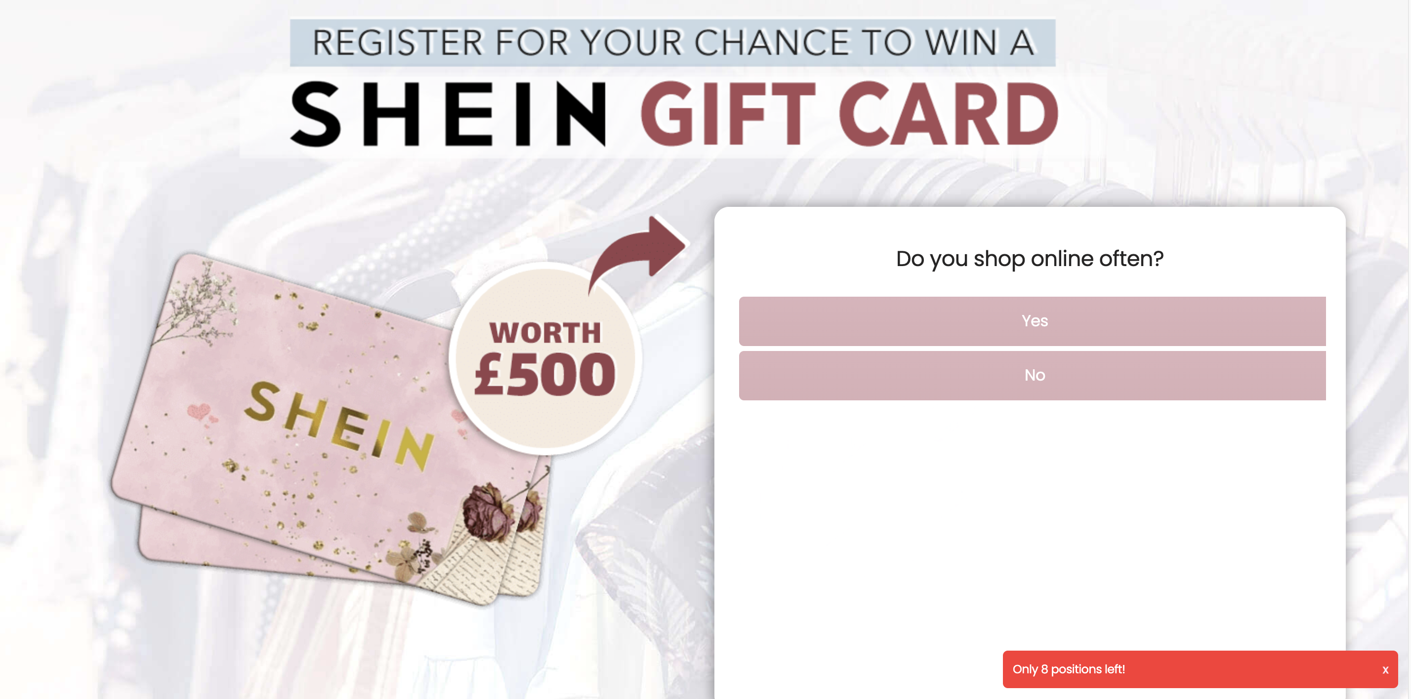 | Offer Name: | UK - Quiztionnaire - Shein Giftcard - (CPL) |