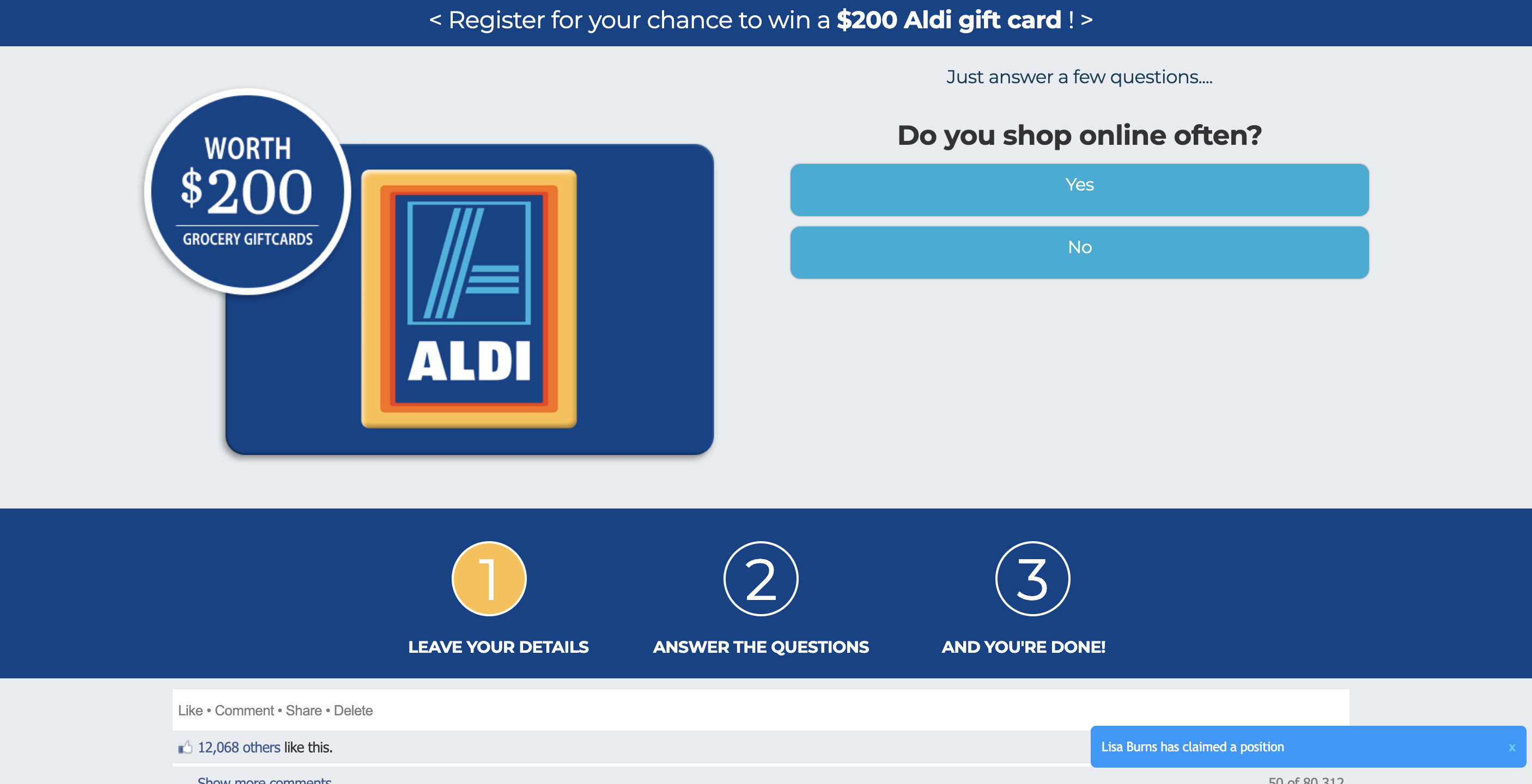 | Offer Name: | NZ - Quiztionnaire - Aldi Giftcard 200 - (CPL) |
