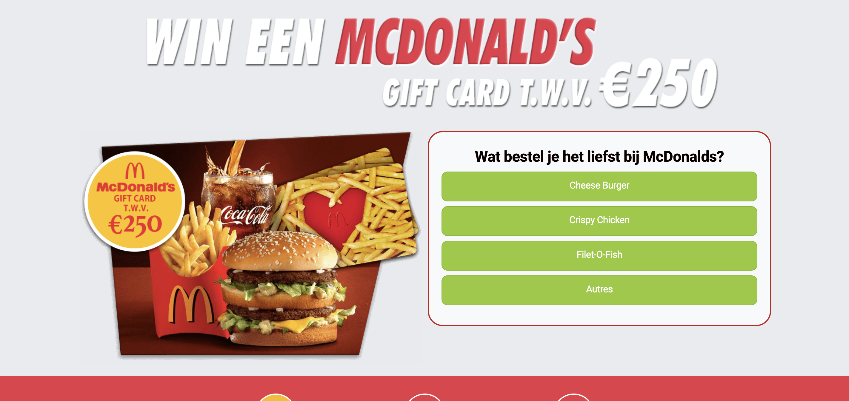 | Offer Name: | NL - Quiztionnaire - McDonalds Giftcard $250 - (CPL) |