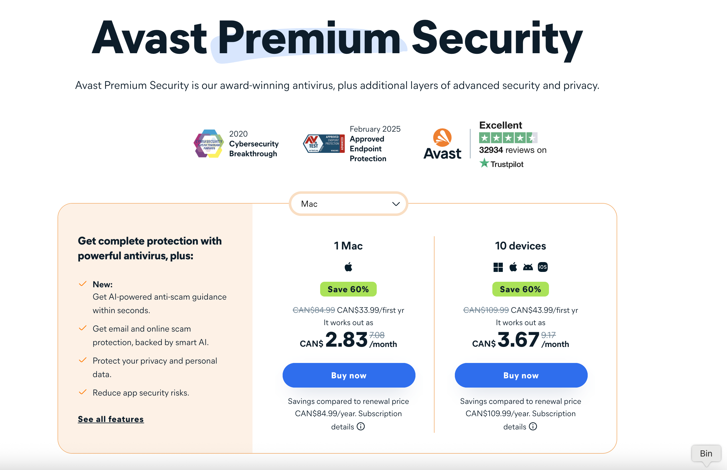 | Offer Name: | CA - Avast Premium Security 60% Off - #2531 |
