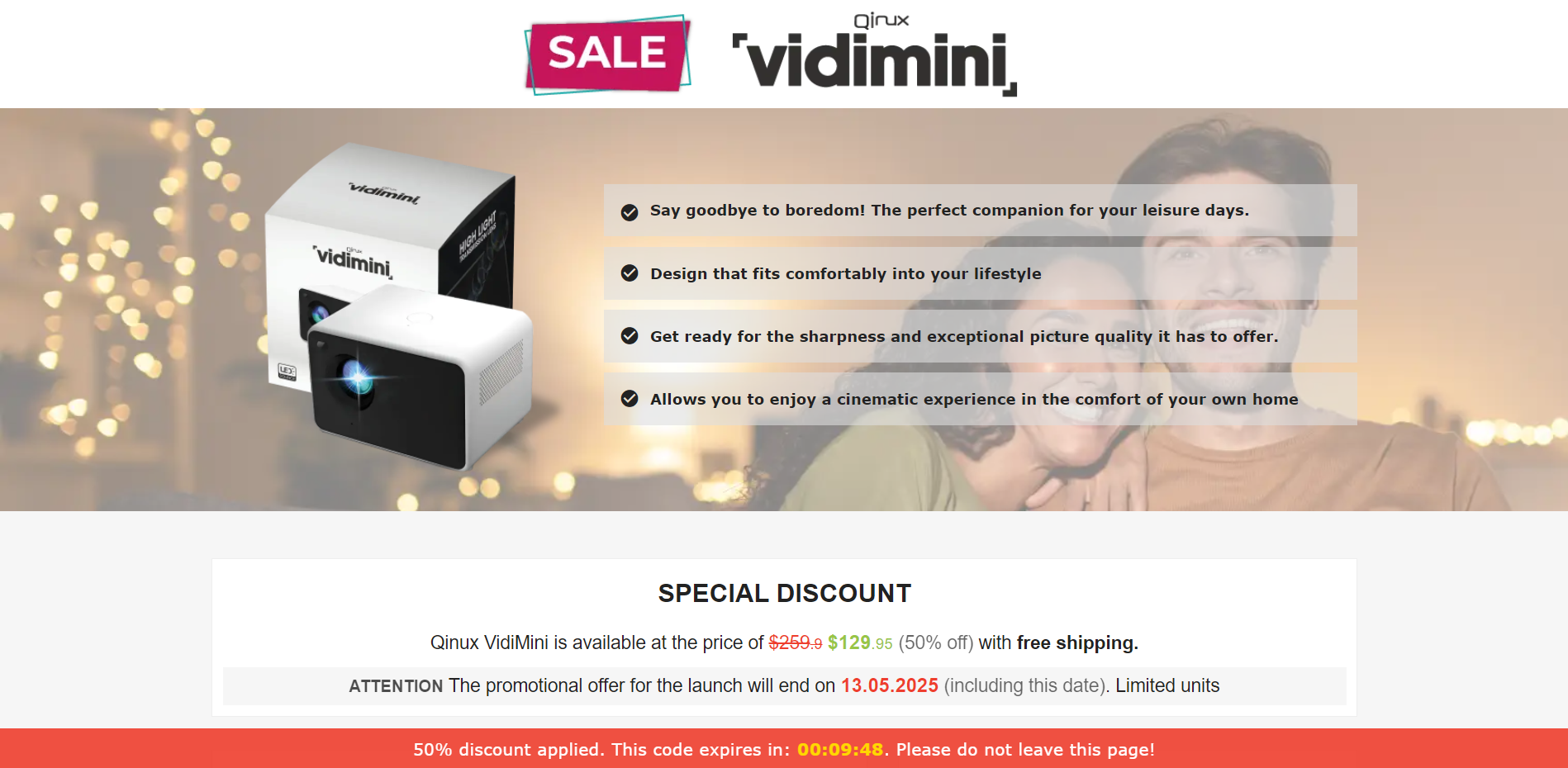 | Offer Name: | [WEB+MOB] Qinux VidiMini – Mini Portable Projector /International (112 GEOs) CPS *FB/TT/Google/Taboola Pixel* [Approval Required] |