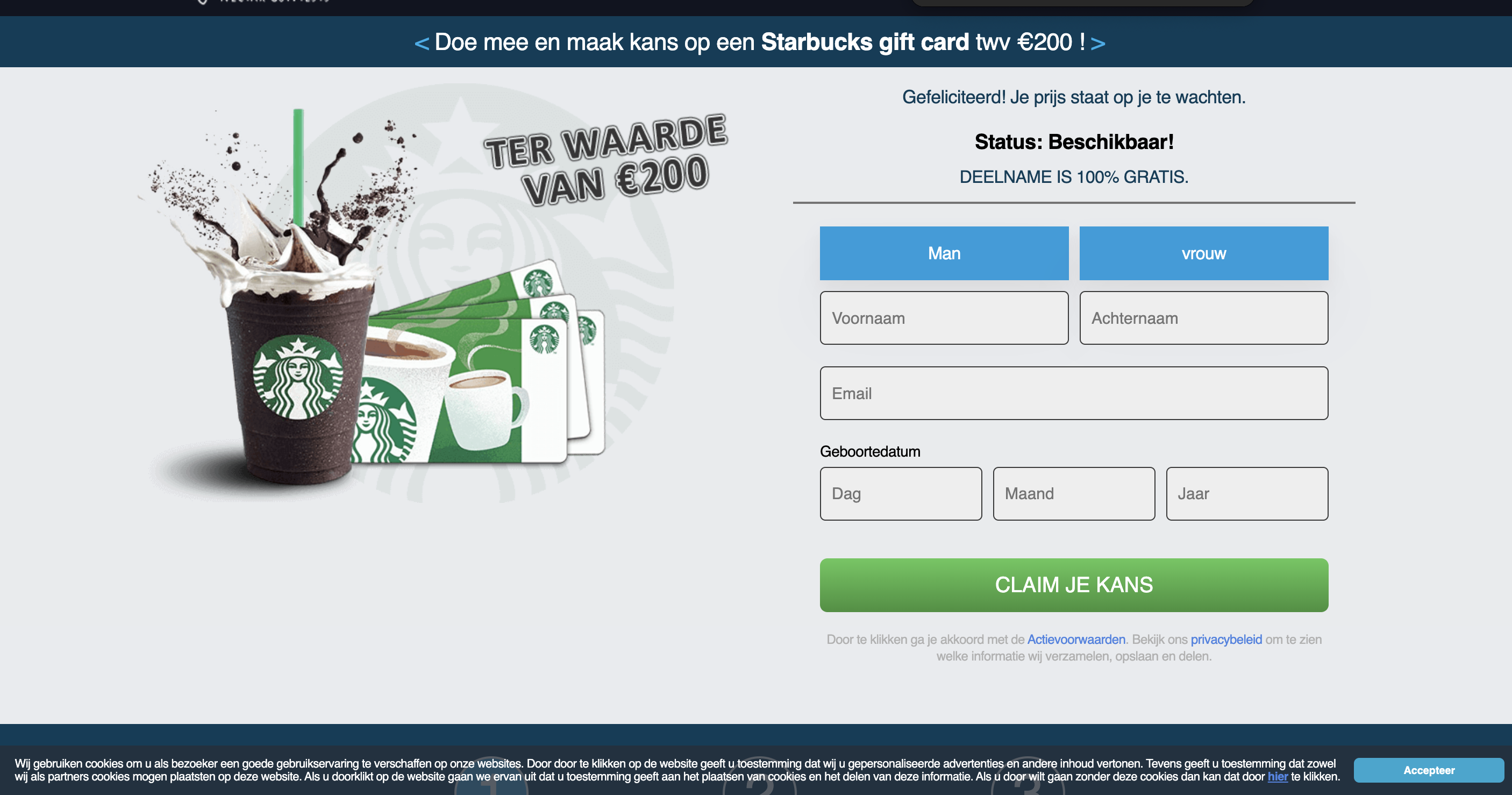 | Offer Name: | NL - Quiztionnaire - Starbucks FB - (CPL) |