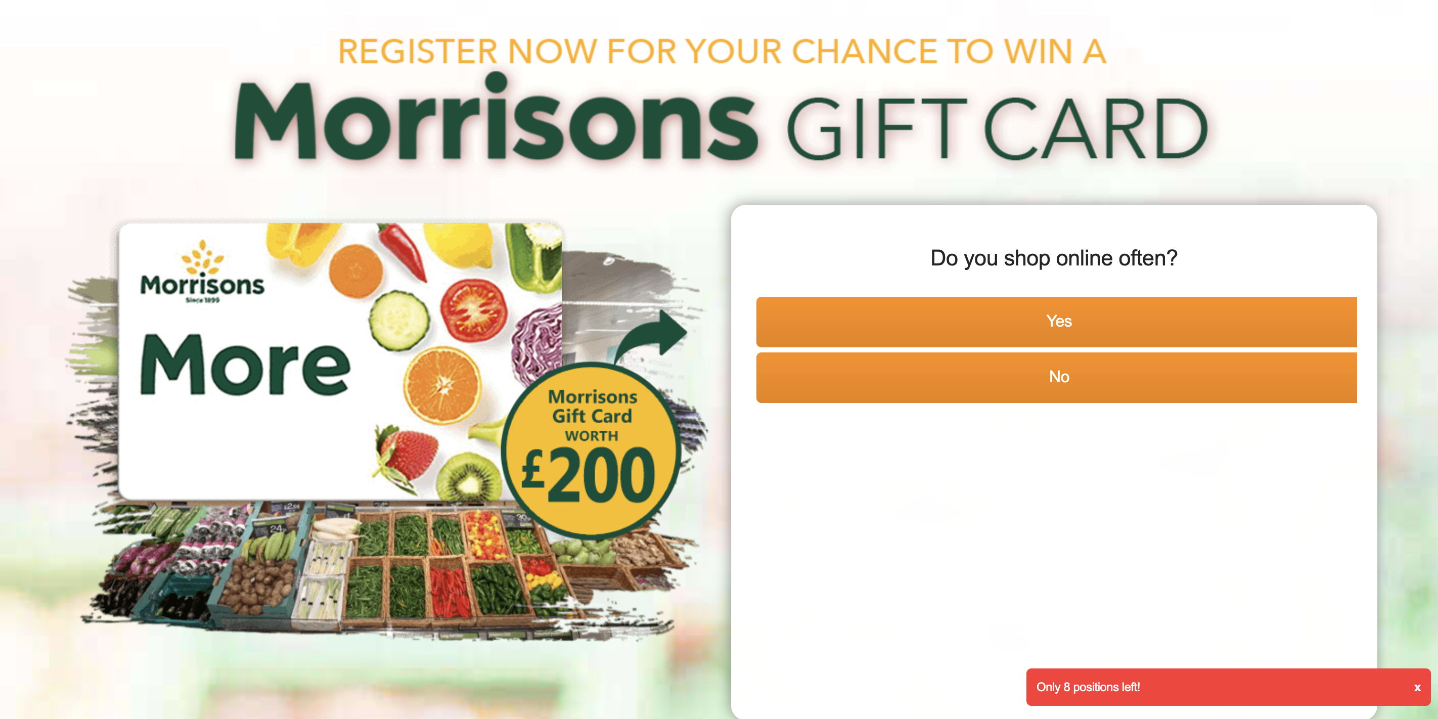 | Offer Name: | UK - Quiztionnaire - Morrisons Giftcard - (CPL) |