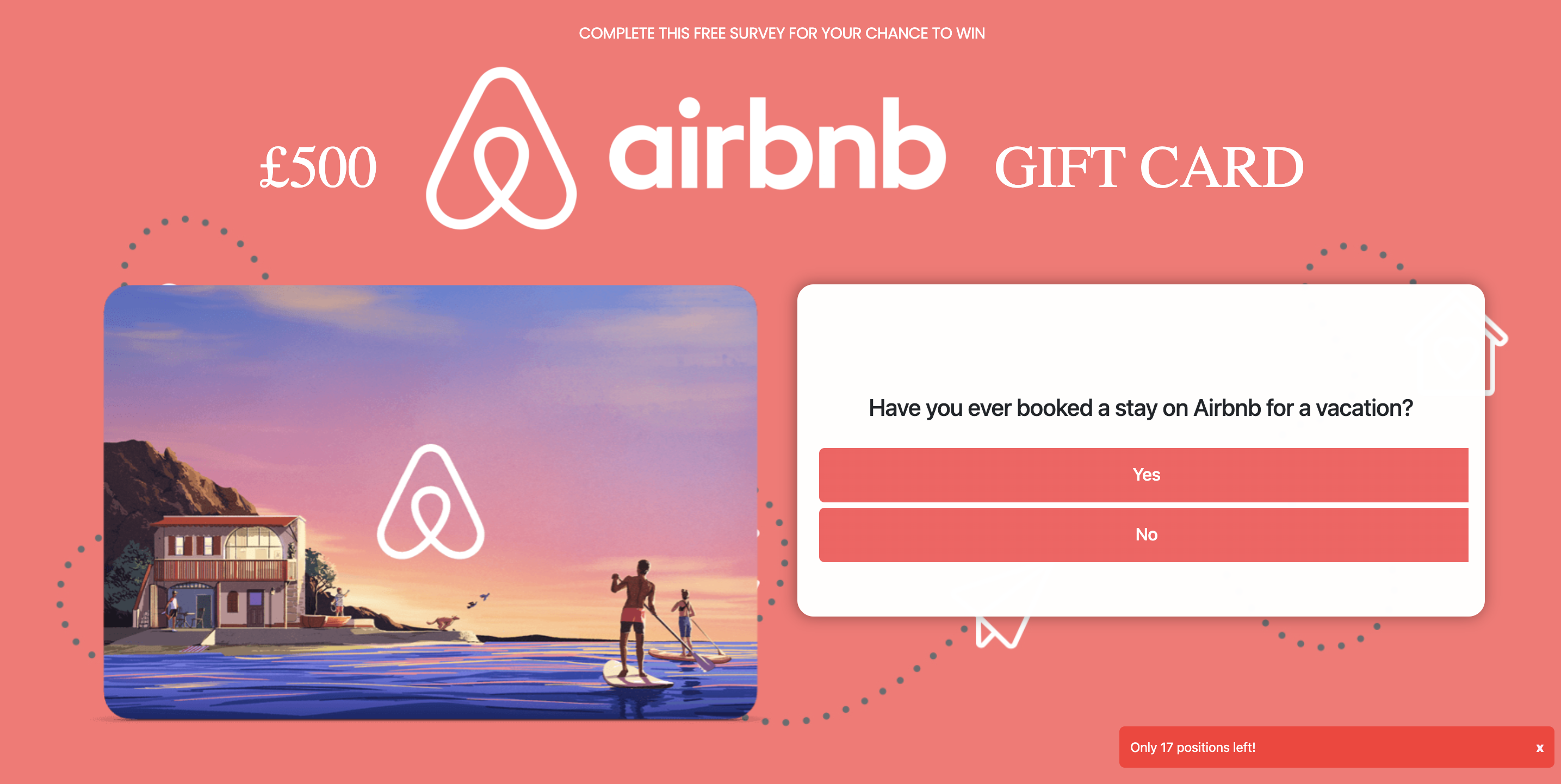 | Offer Name: | UK - Quiztionnaire - Airbnb £500 - (CPL) |