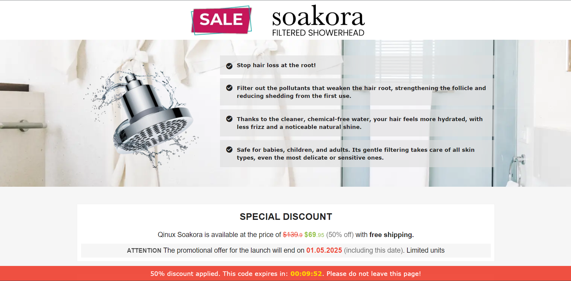 | Offer Name: | [WEB+MOB] Qinux Soakora – Filtered Showerhead /International (112 GEOs) CPS *FB/TT/Google/Taboola Pixel* [Approval Required] |