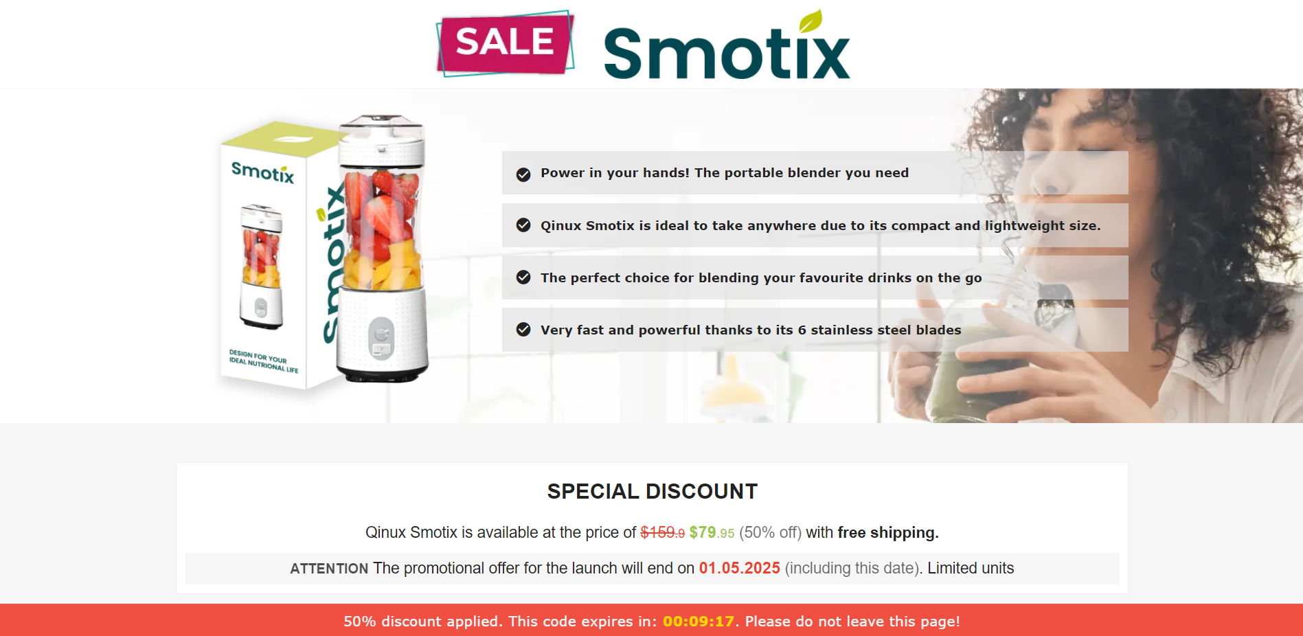 | Offer Name: | [WEB+MOB] Qinux Smotix – Portable Blender /International (112 GEOs) CPS *FB/TT/Google/Taboola Pixel* [Approval Required] |