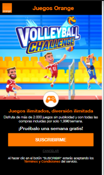 | Offer Name: | [MOB] Volleyball Challenge /ES [Orange] - 2 click |