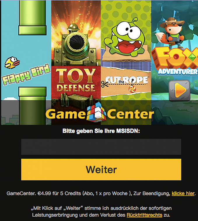 | Offer Name: | [MOB] Game Center /AT [A1] - 1 Click |