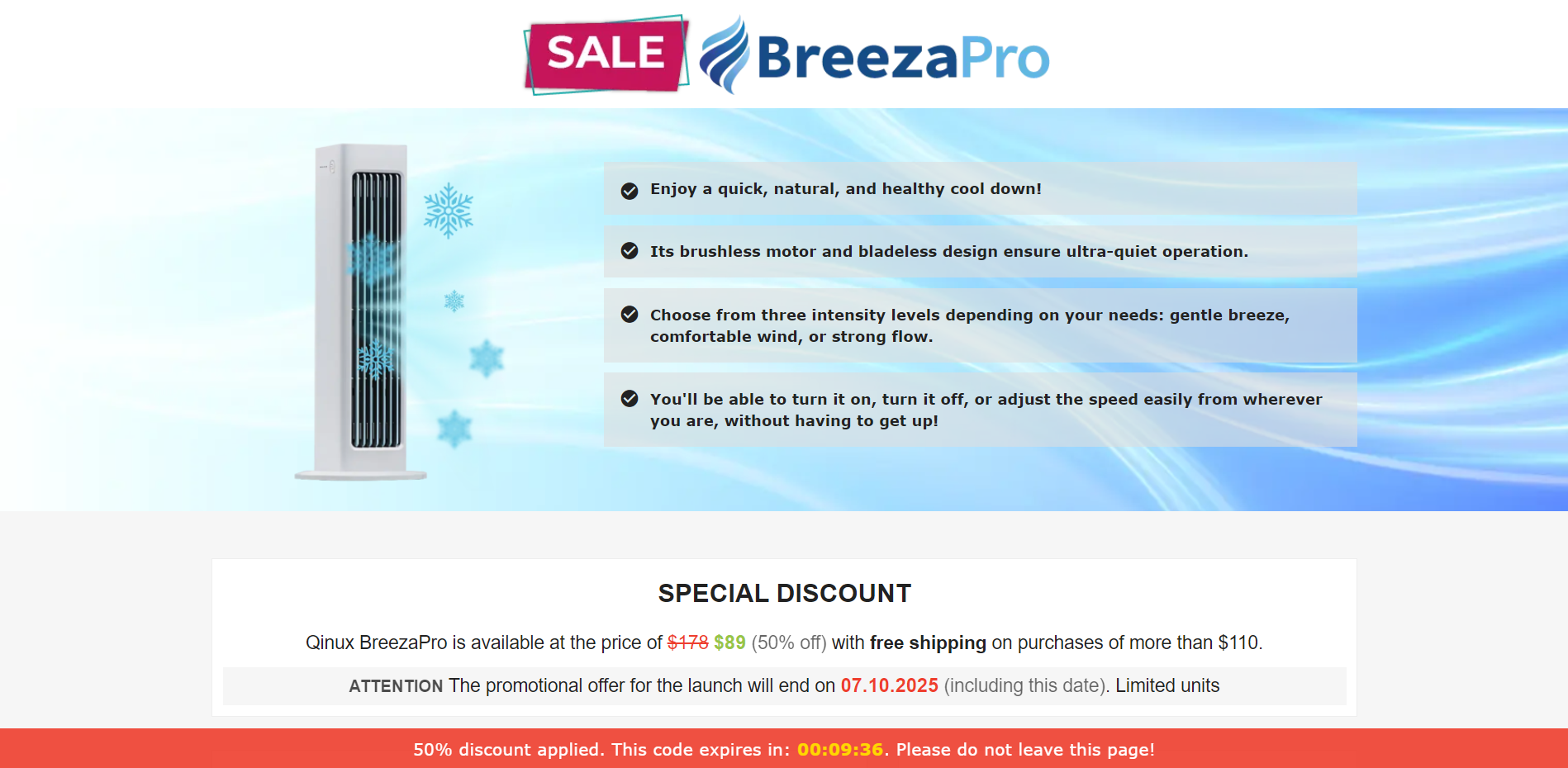 | Offer Name: | [WEB+MOB] Qinux BreezaPro – Bladeless Portable Fan /International (112 GEOs) CPS *FB/TT/Google/Taboola Pixel* [Approval Required] |