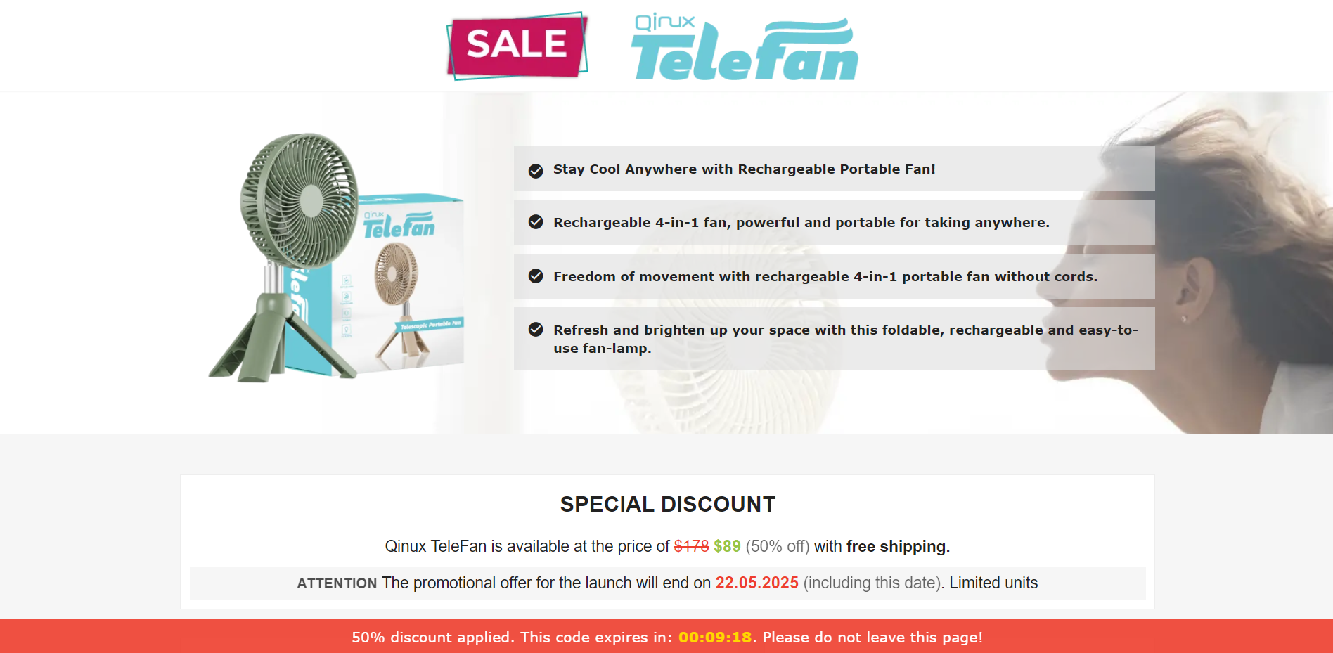 | Offer Name: | [WEB+MOB] Qinux Telefan – 4 in 1 Fan /International (112 GEOs) CPS *FB/TT/Google/Taboola Pixel* [Approval Required] |