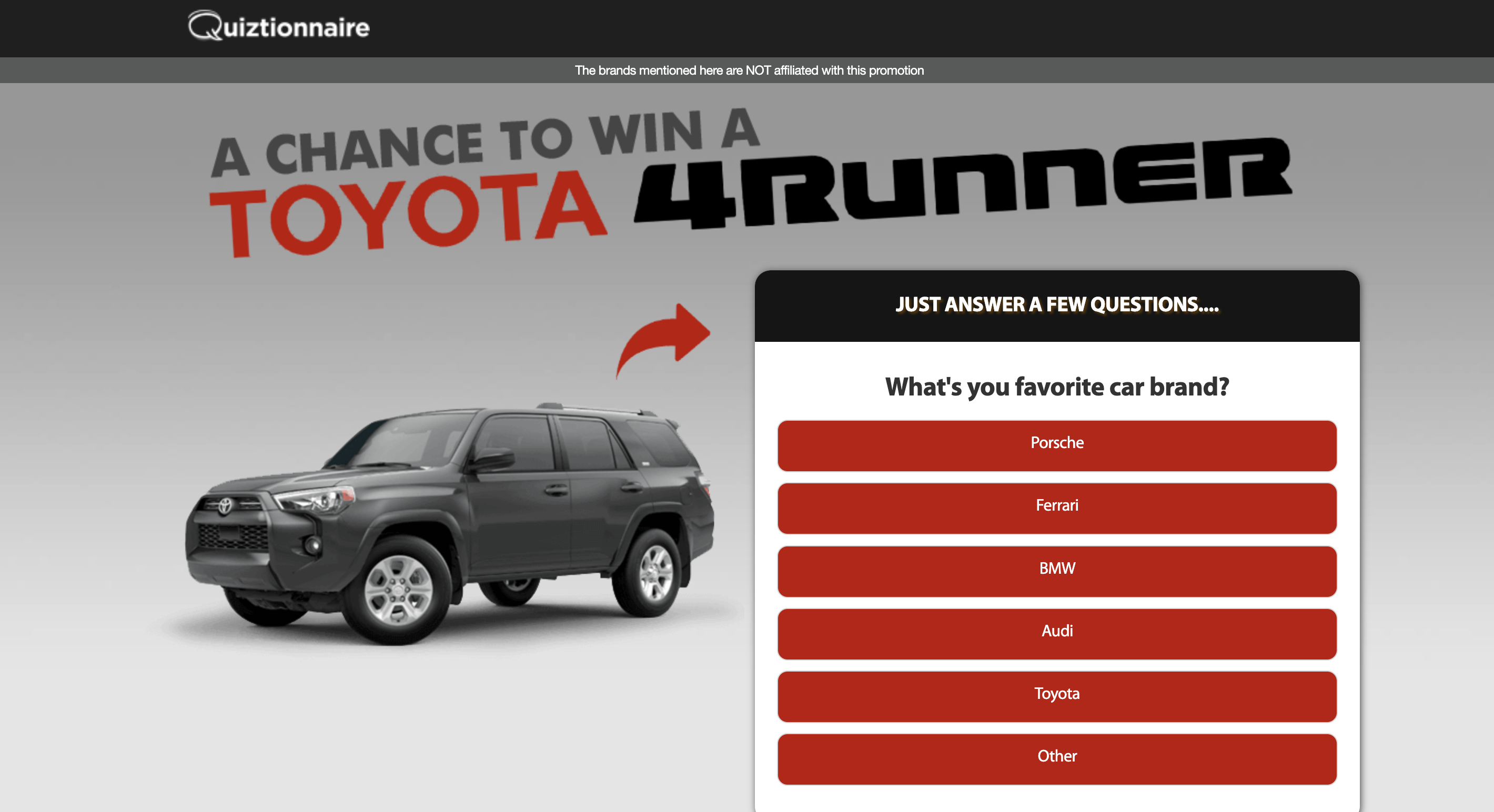 | Offer Name: | UK - Quiztionnaire - Toyota 4runner - (CPL) |