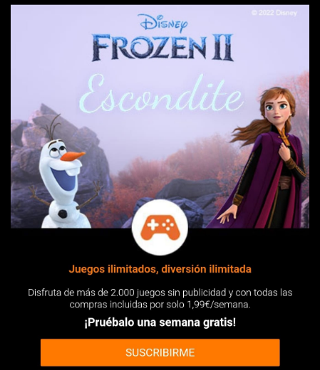| Offer Name: | [MOB] Frozen /ES [Orange] 2 Click |