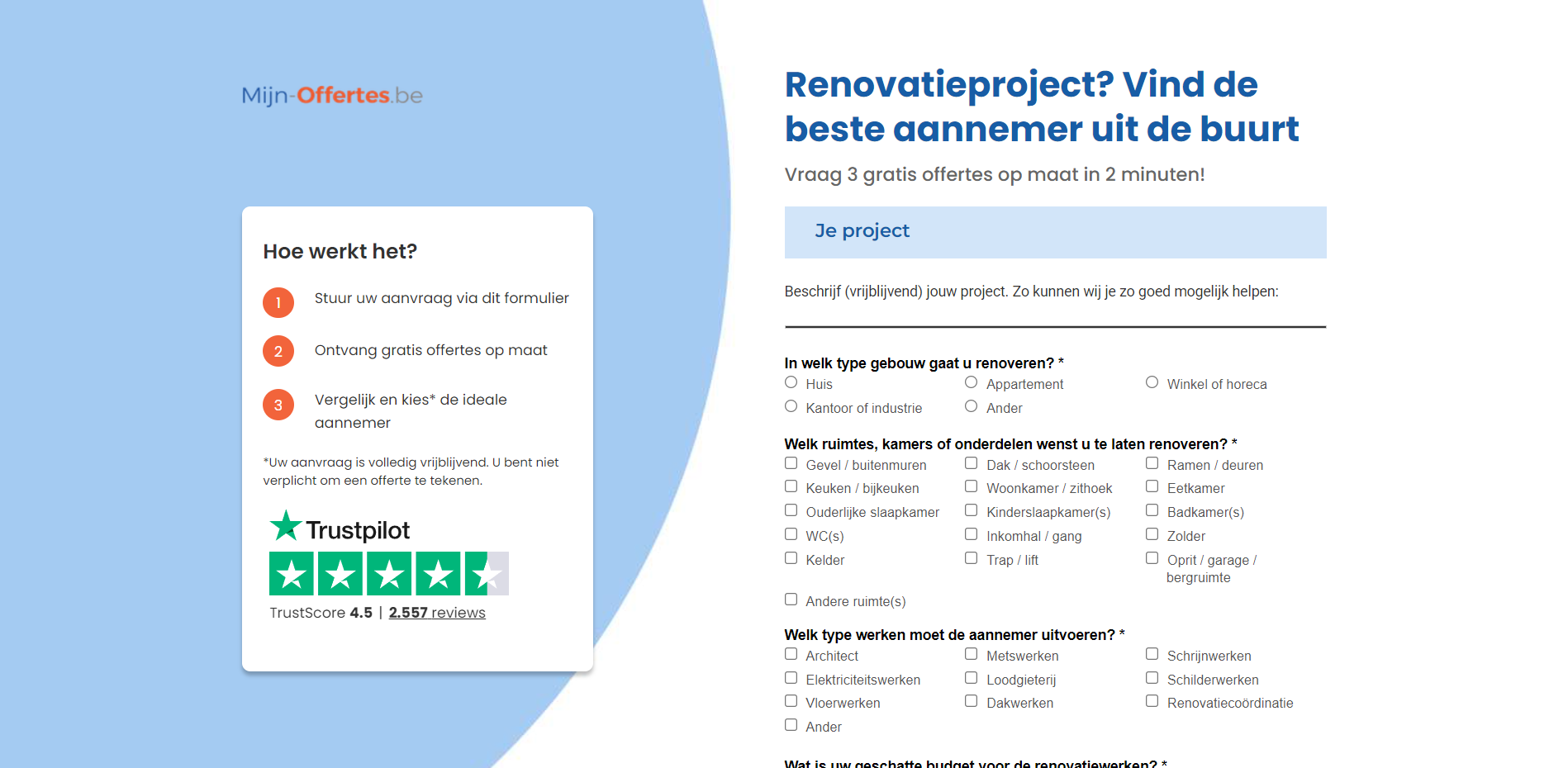 | Offer Name: | [WEB+MOB] Mijn-Offertes – Total Renovation without stress with a contractor /BE(NL) SOI [Approval Required] |