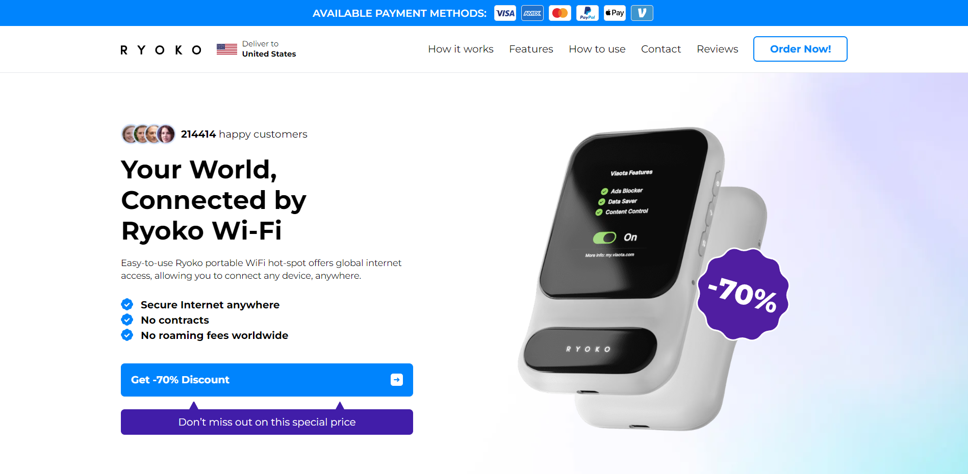 | Offer Name: | [WEB+MOB] Ryoko PRO - WiFi Router /International (59 GEOs) CPS |