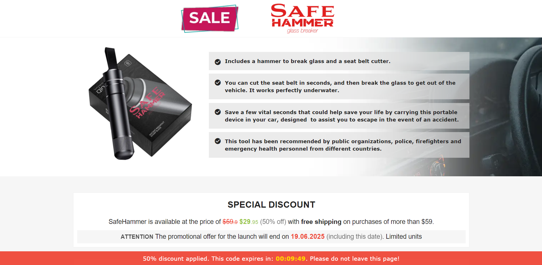 | Offer Name: | [WEB+MOB] SafeHammer – Glass Breaker /International (112 GEOs) CPS *FB/TT/Google/Taboola Pixel* [Approval Required] |