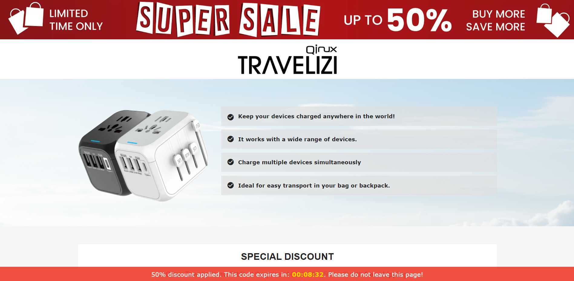 | Offer Name: | [WEB+MOB] Qinux Travelizi – Travel Adapter /International (112 GEOs) CPS *FB/TT/Google/Taboola Pixel* [Approval Required] |