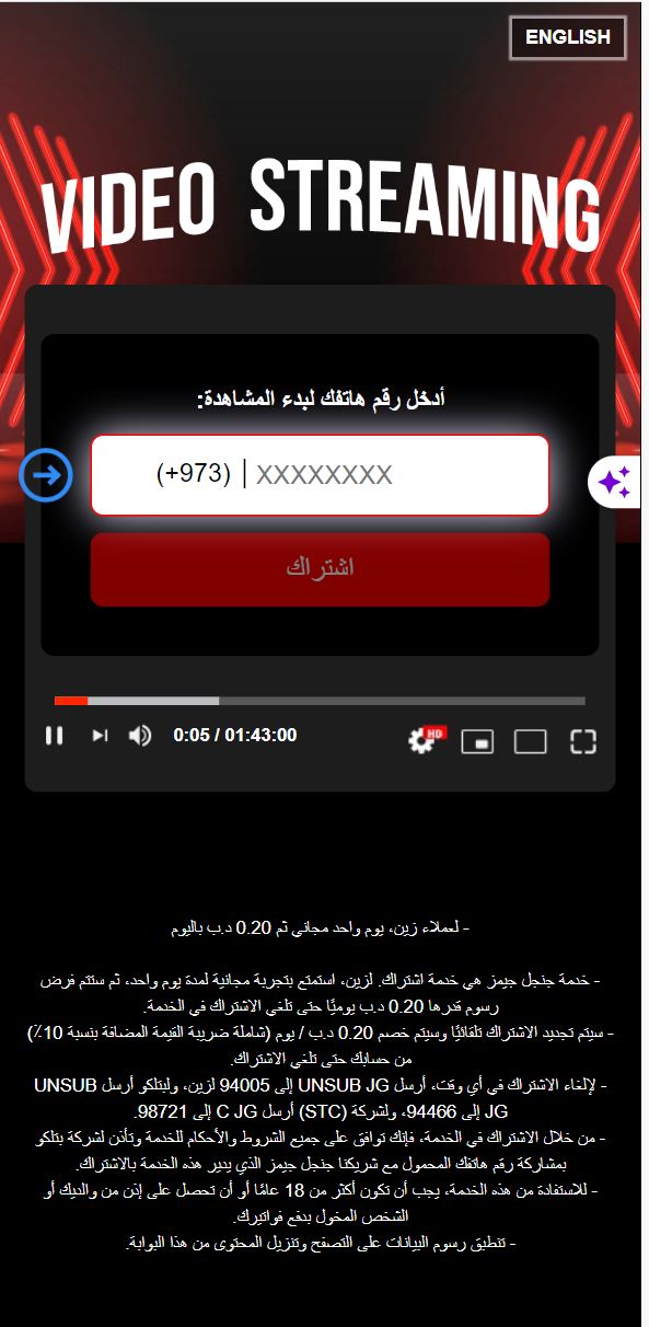 Carriers: STC, Batelco, Zain Connection types: WiFi & Cellular Flow: Pin submit Payout model: Non-Billable Restrictions: Adult, Autosubscription, Content locking, Fraud, iFrame, Incentivized, Misleading.