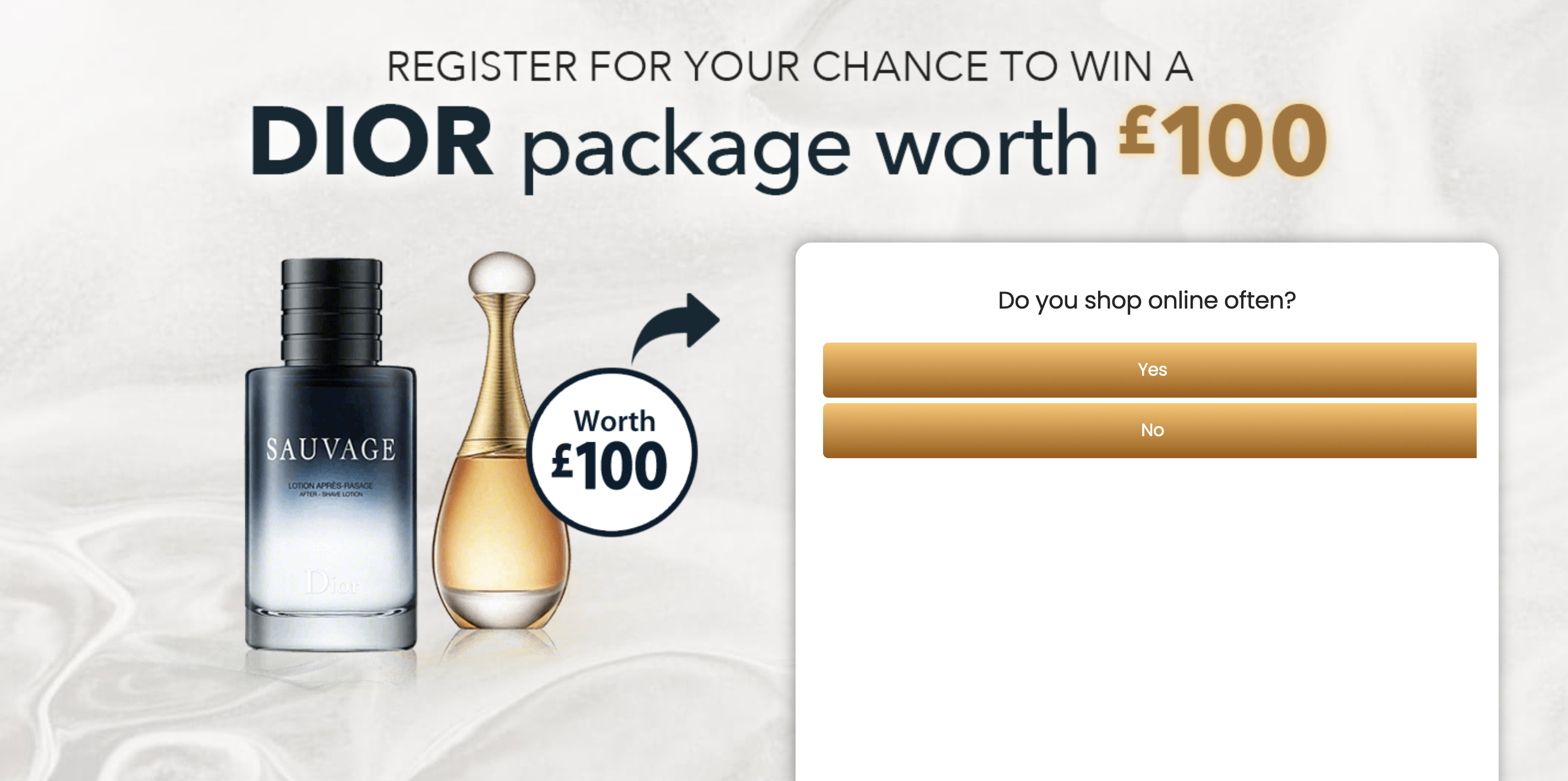 | Offer Name: | UK - Quiztionnaire - Dior Giftcard £100 - (CPL) |