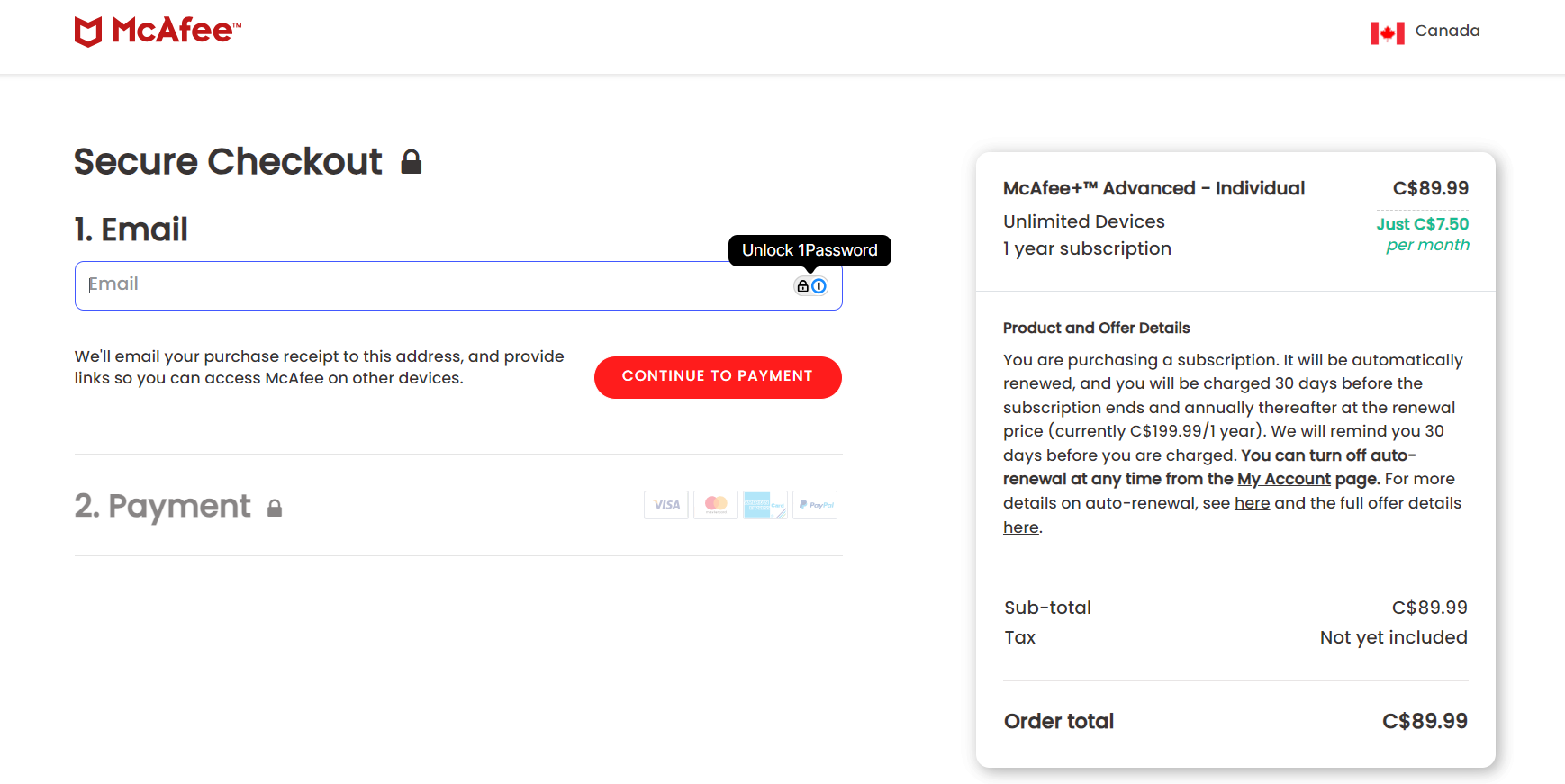 | Offer Name: | CA - McAfee DTC Advanced Individual Desktop/Mobile - Windows/Mac - CPS |