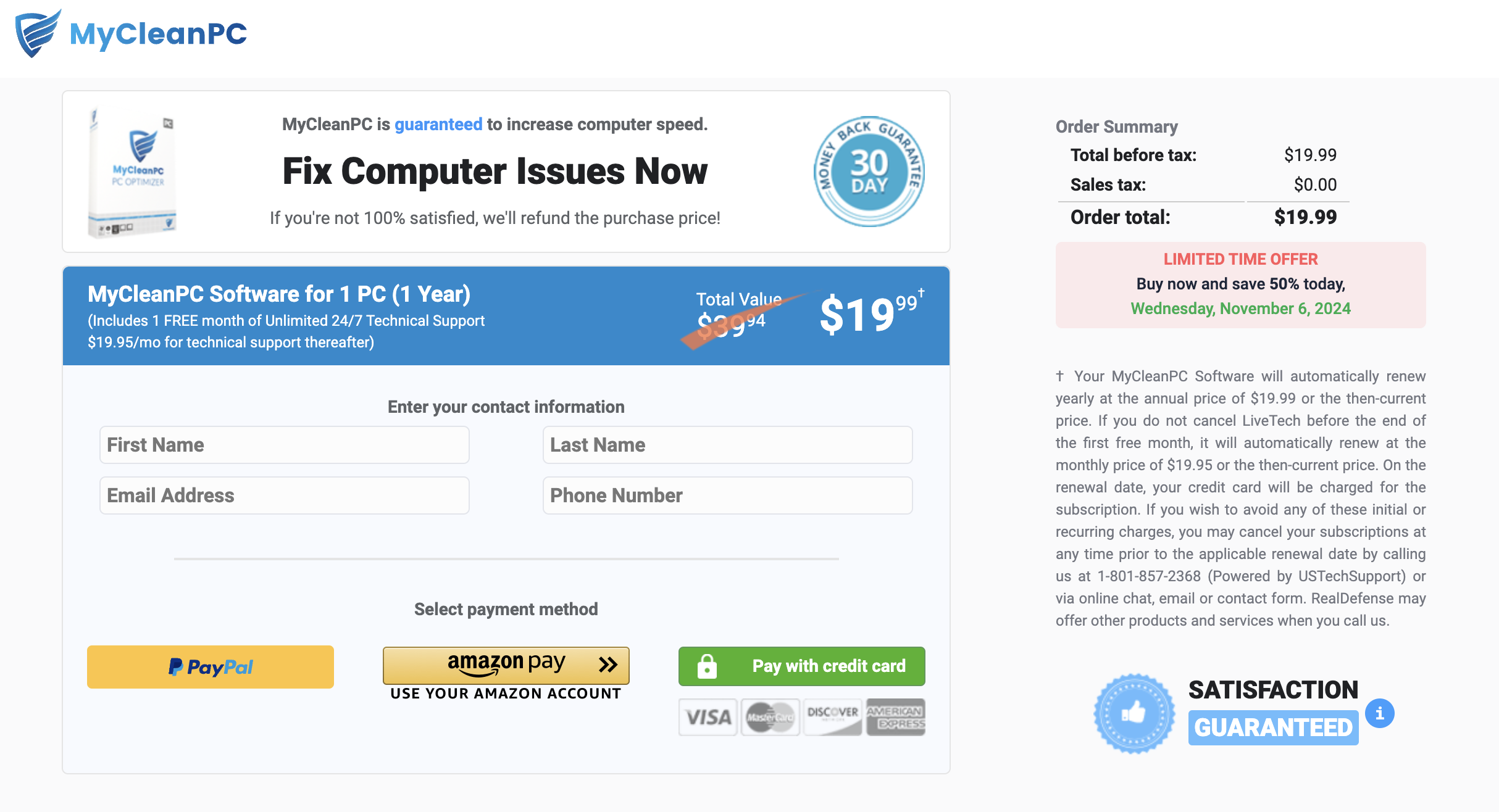 | Offer Name: | [WEB] MyCleanPC - DTC /US/CA/UK/AU/NZ CPS [Approval Only] |