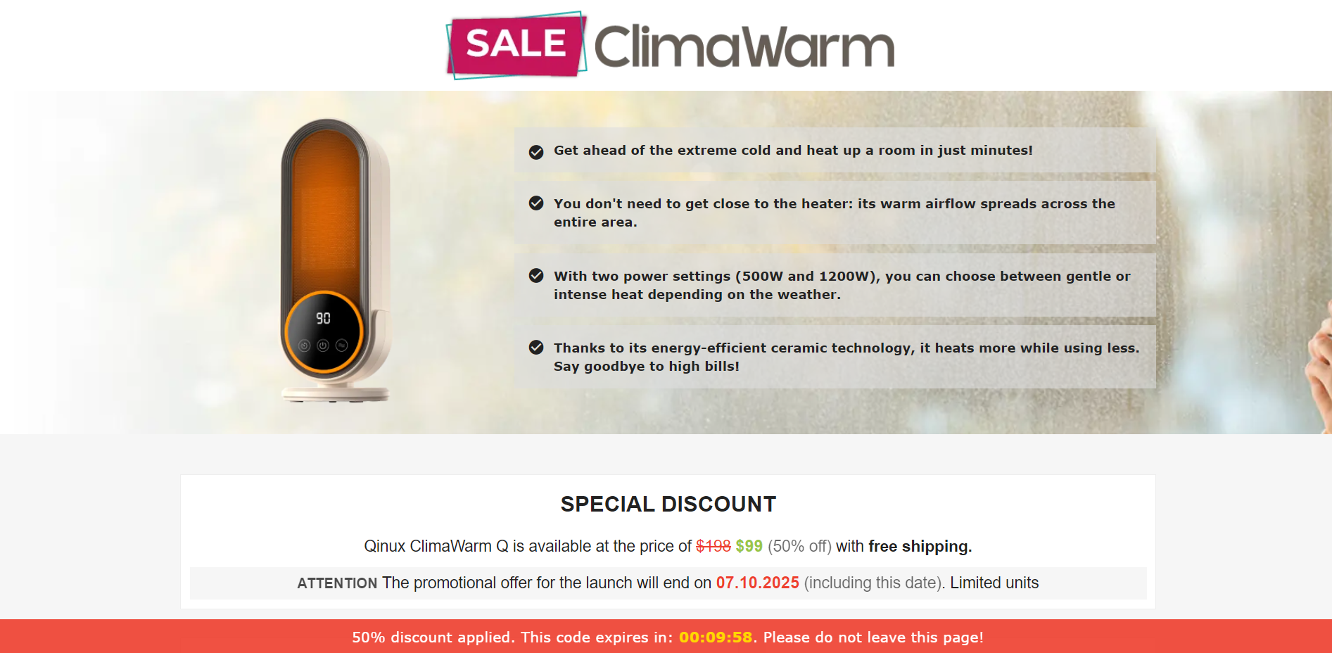 | Offer Name: | [WEB+MOB] Qinux ClimaWarm Q – Bladeless Portable Fan /International (30 GEOs) CPS *FB/TT/Google/Taboola Pixel* [Approval Required] |