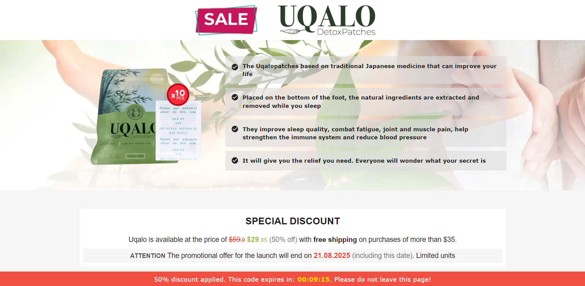 | Offer Name: | [WEB+MOB] Uqalo – Detox Patches /International (112 GEOs) CPS *FB/TT/Google/Taboola Pixel* [Approval Required] |