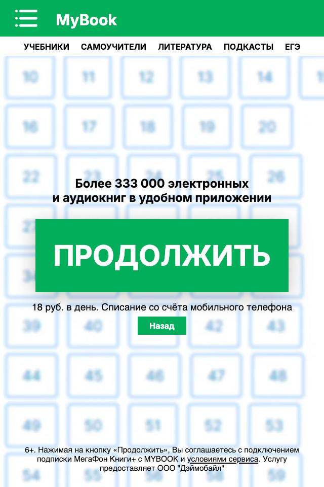 Offer Name: [RU] Mybook (Green Continue Numbers)