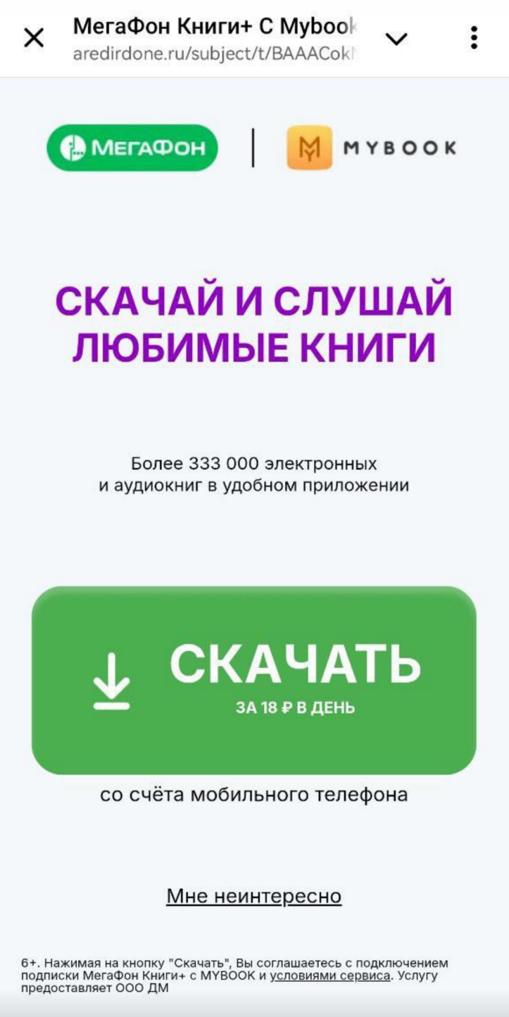 Offer Name: [RU] Mybook (Download Green price button)