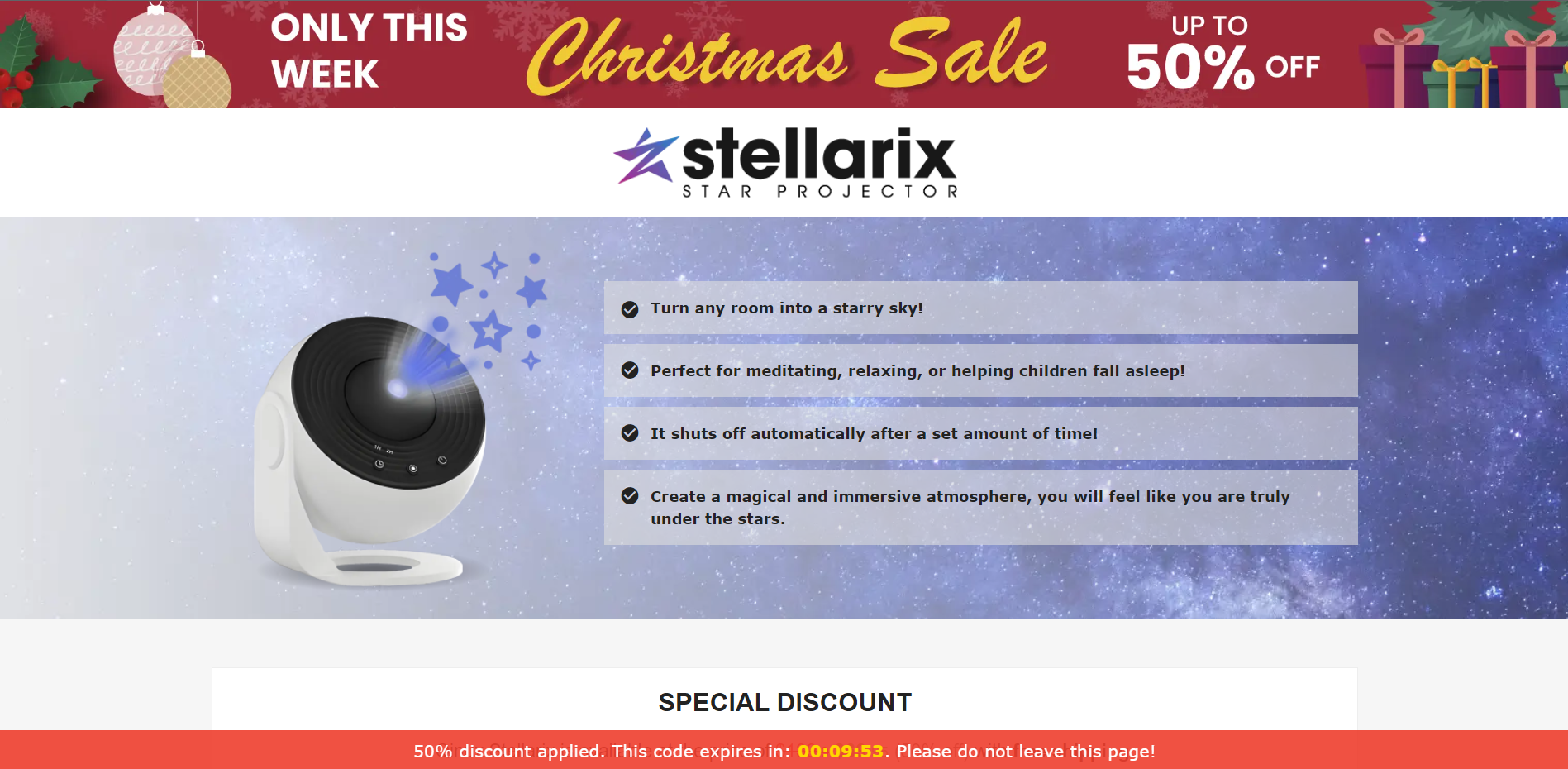 | Offer Name: | [WEB+MOB] Qinux Stellarix – Star Projector /International (112 GEOs) CPS *FB/TT/Google/Taboola Pixel* |