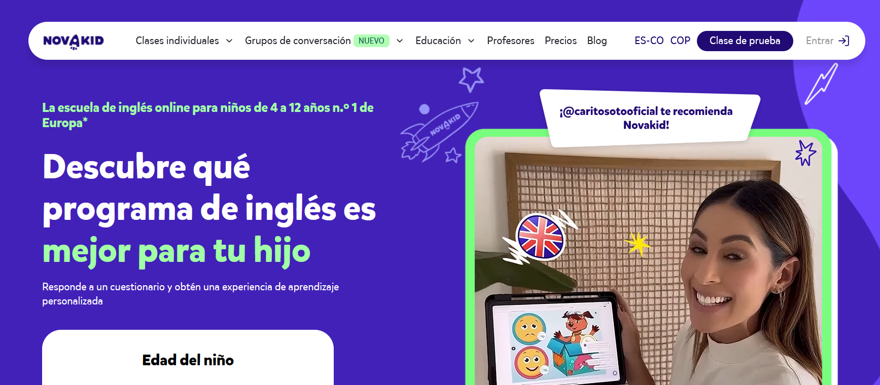 Description: Novakid is an innovative online English school, specifically aimed at children between 4 and 12 years old. With a combination of state-of-the-art technology and a child-friendly learning environment, Novakid offers a unique platform for playful and interactive English learning.