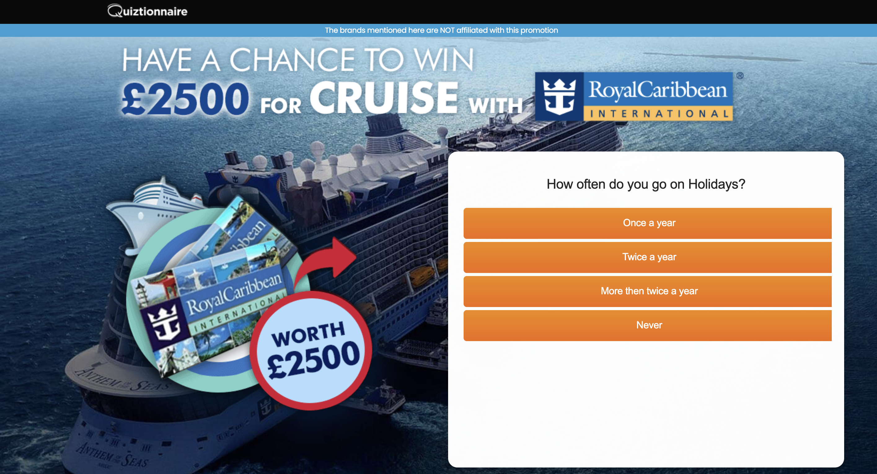 | Offer Name: | AU - Quiztionnaire - Royal Caribbean Holiday - (CPL) |