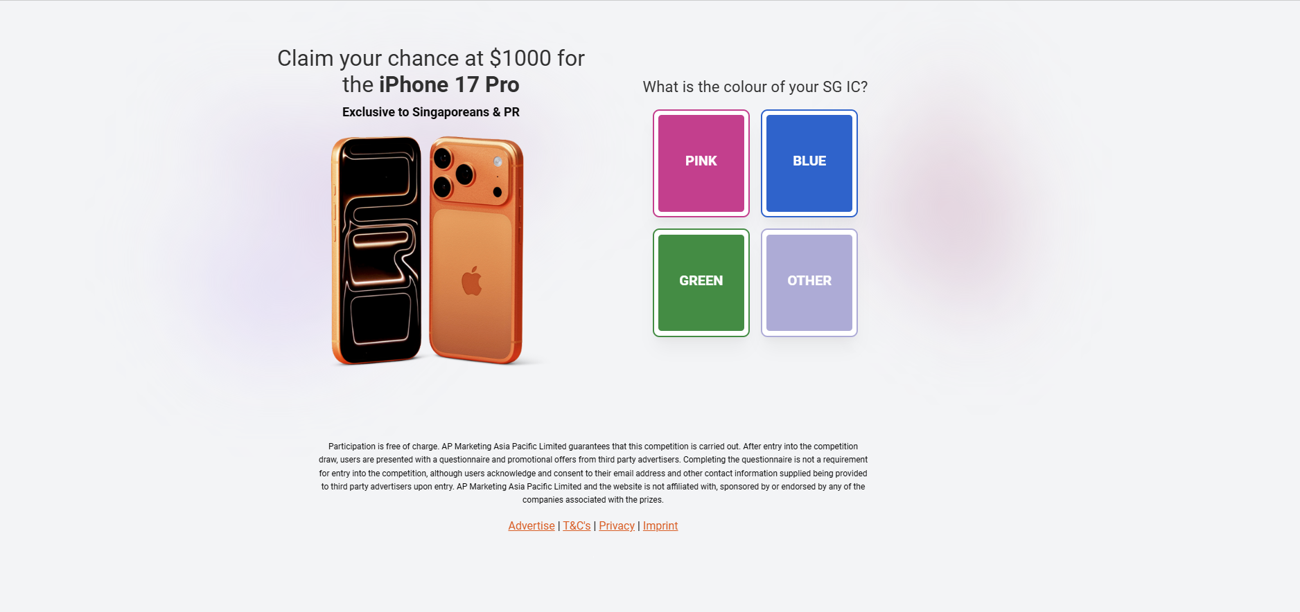 Offer Name: Iphone 17 pro SG (SG)