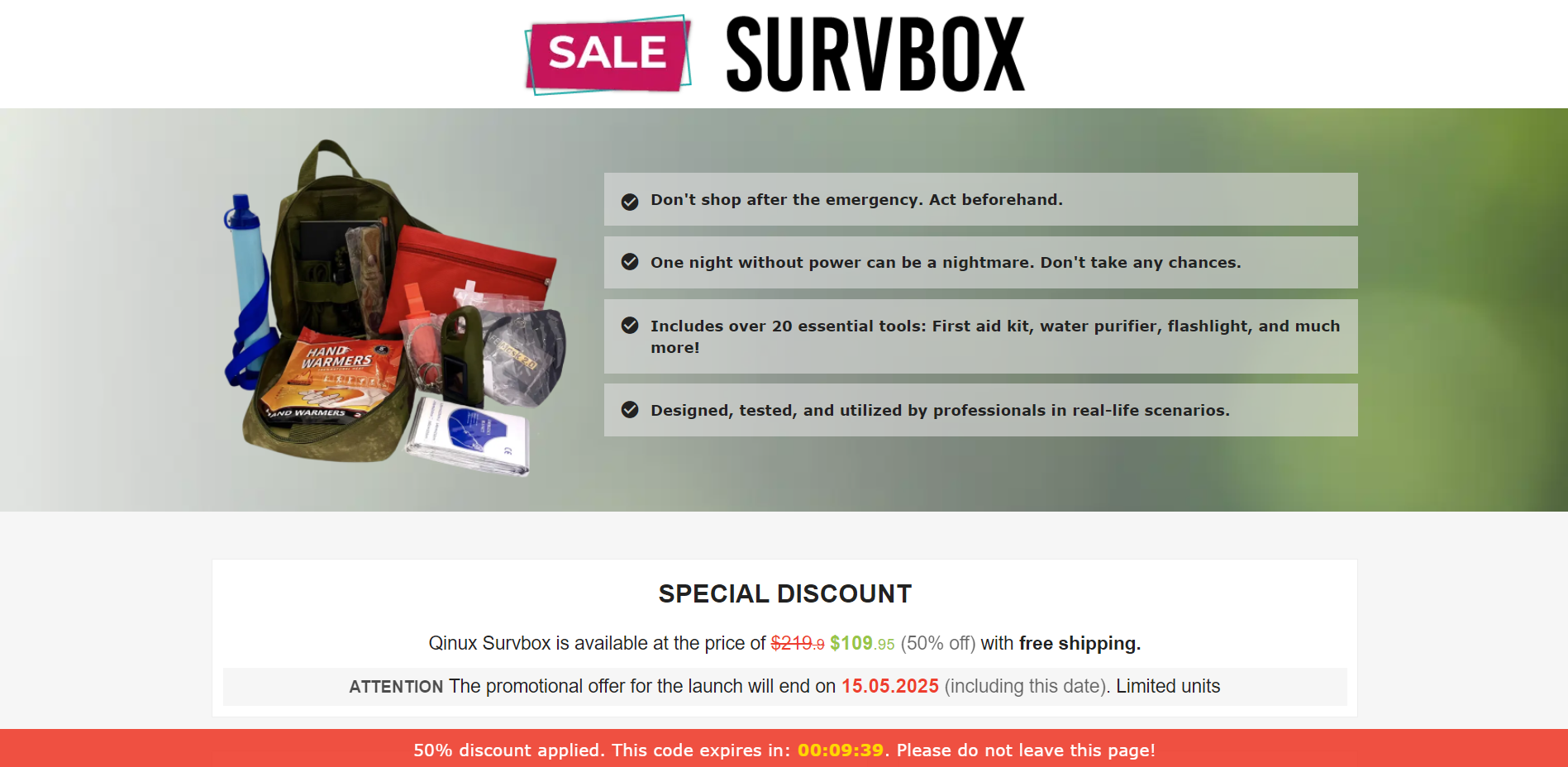 | Offer Name: | [WEB+MOB] Qinux Survbox – Survival Kit /International (112 GEOs) CPS *FB/TT/Google/Taboola Pixel* [Approval Required] |