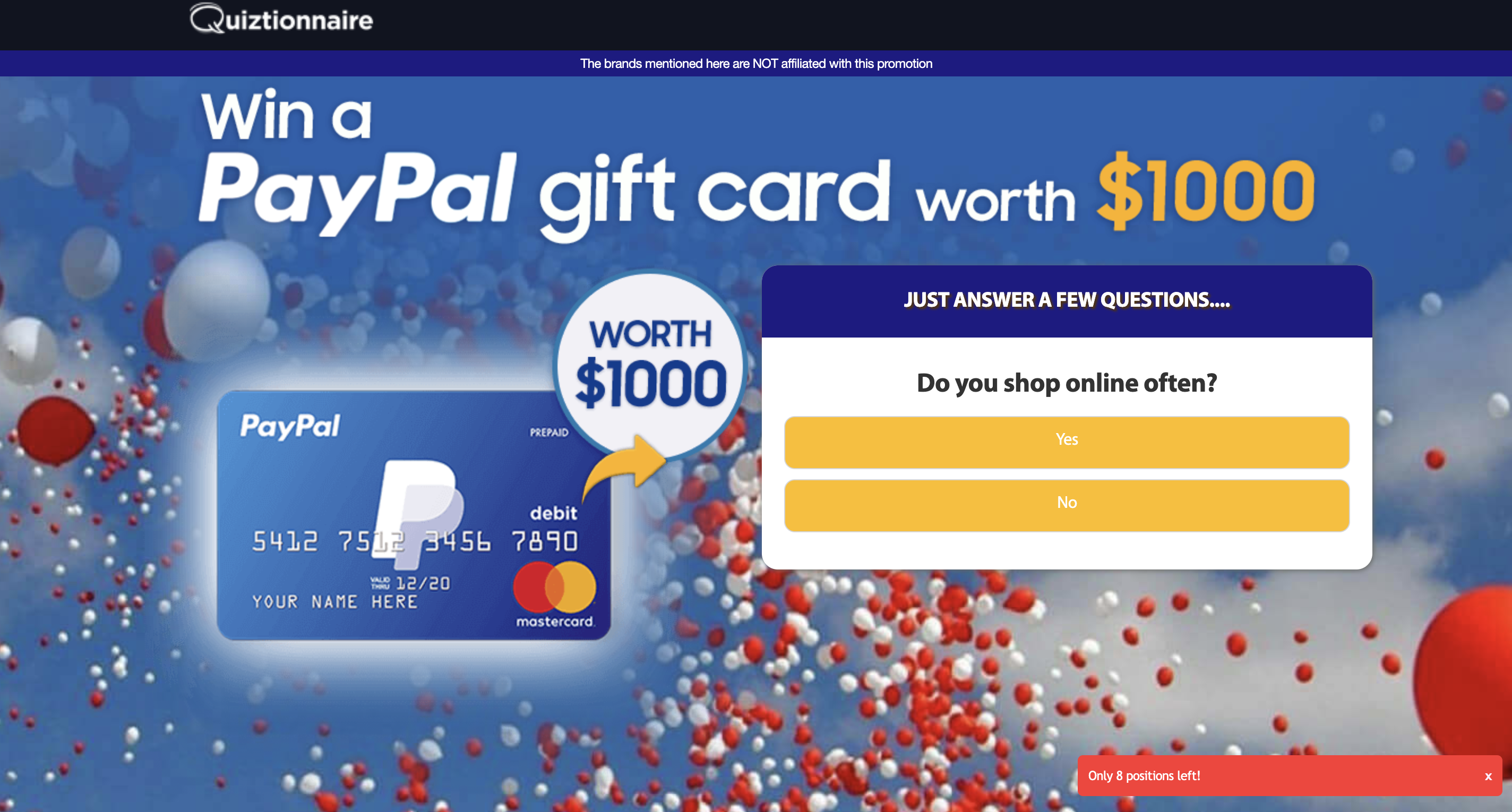 | Offer Name: | NZ - Quiztionnaire - Paypal Giftcard $1000 - (CPL) |