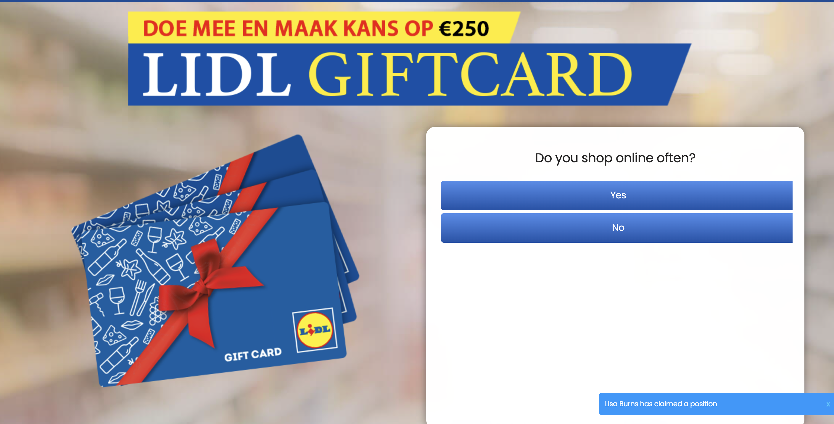 | Offer Name: | NL - Quiztionnaire - Lidl Giftcard £500 - (CPL) |