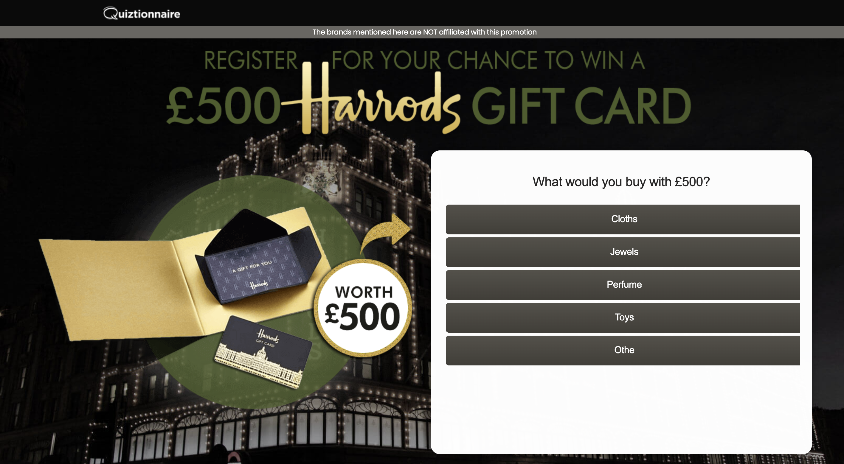 | Offer Name: | UK - Quiztionnaire - Harrods - (CPL) |