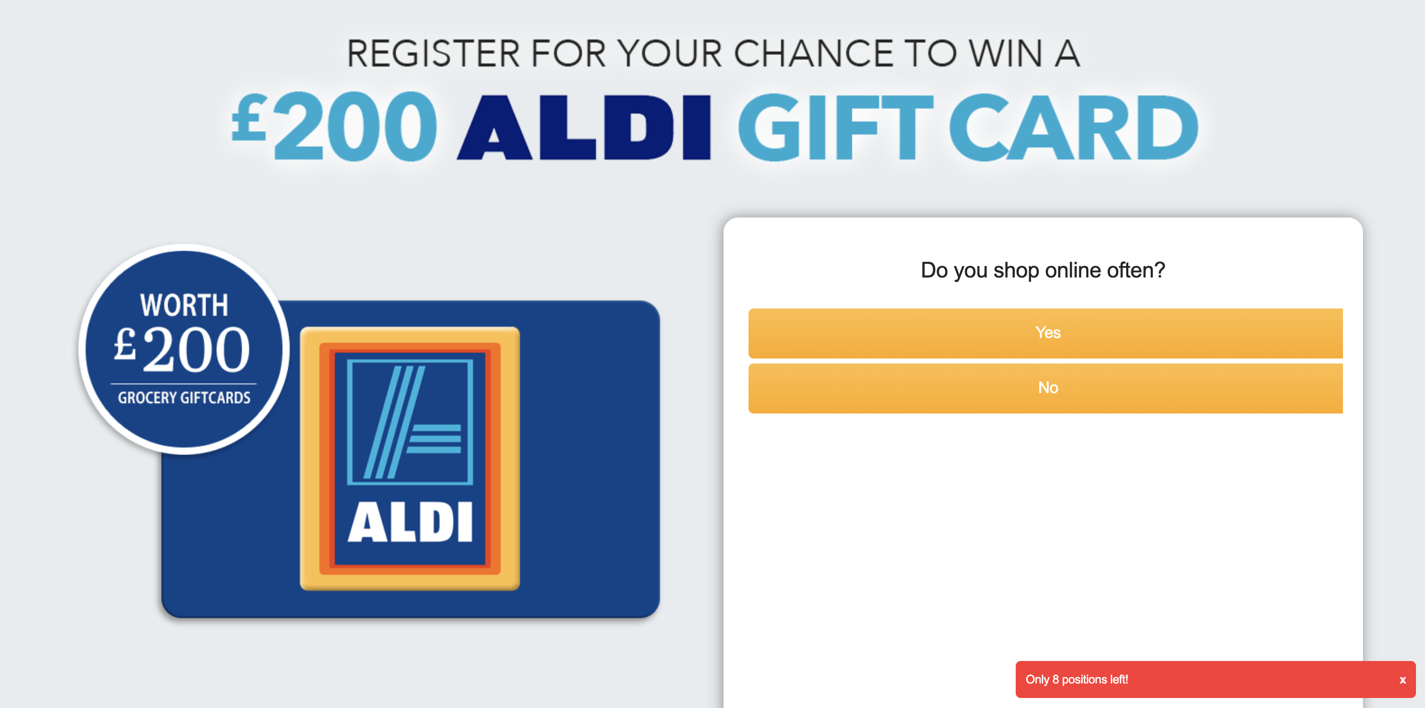 | Offer Name: | UK - Quiztionnaire - Aldi Giftcard 200 - (CPL) |