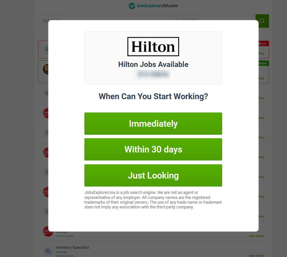 | Offer Name: | JobExploreUSA - Hilton - CPA - [Email] - [US] |