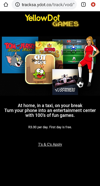 | Offer Name: | [MOB] YellowDot Games /ZA [Vodacom] - 1 Click |