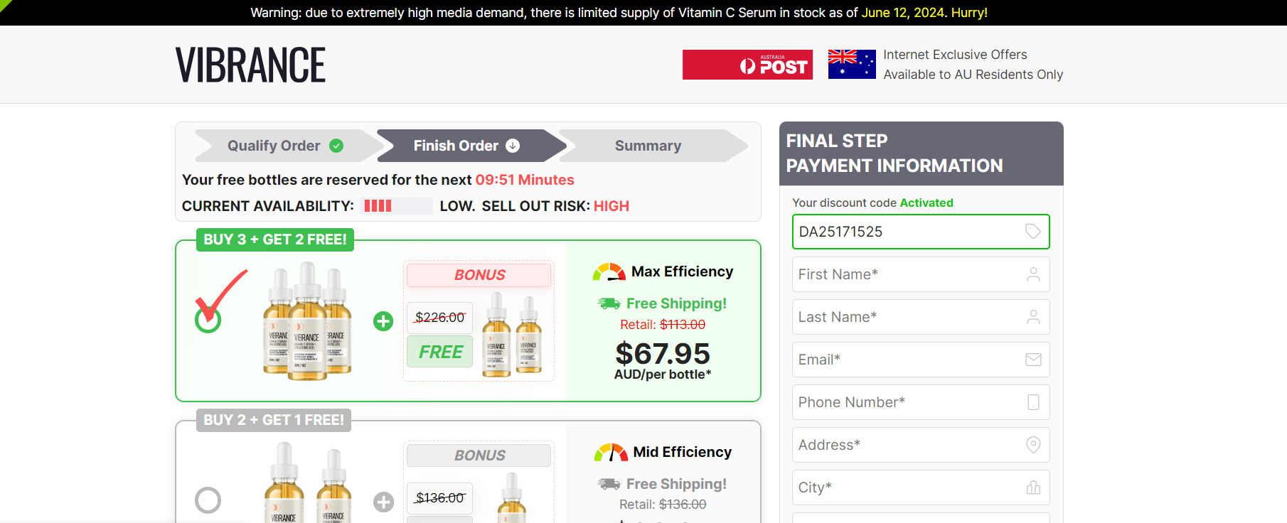 | Offer Name: | [WEB+MOB] Vibrance Vitamin C Serum (Checkout page) /AU [CPS] *FB Pixel* [Approval Required] |