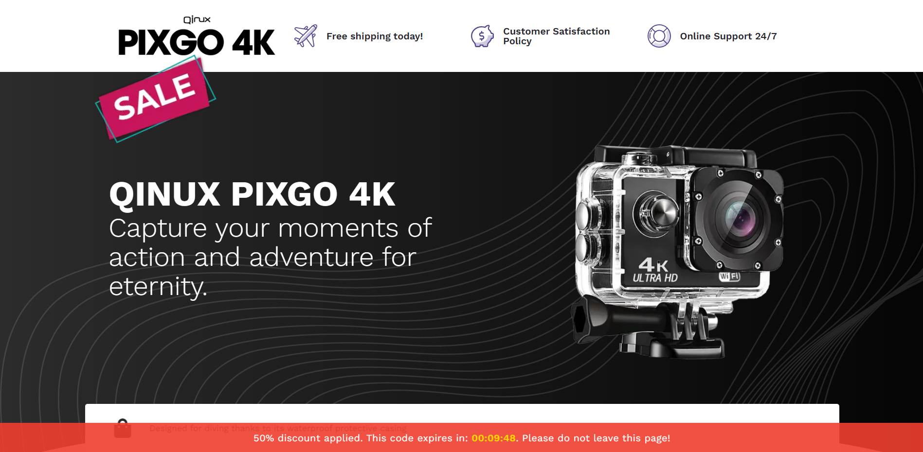 | Offer Name: | [WEB+MOB] Qinux Pixgo 4K – Action Camera /International (112 GEOs) CPS *FB/TT/Google/Taboola Pixel* [Approval Required] |