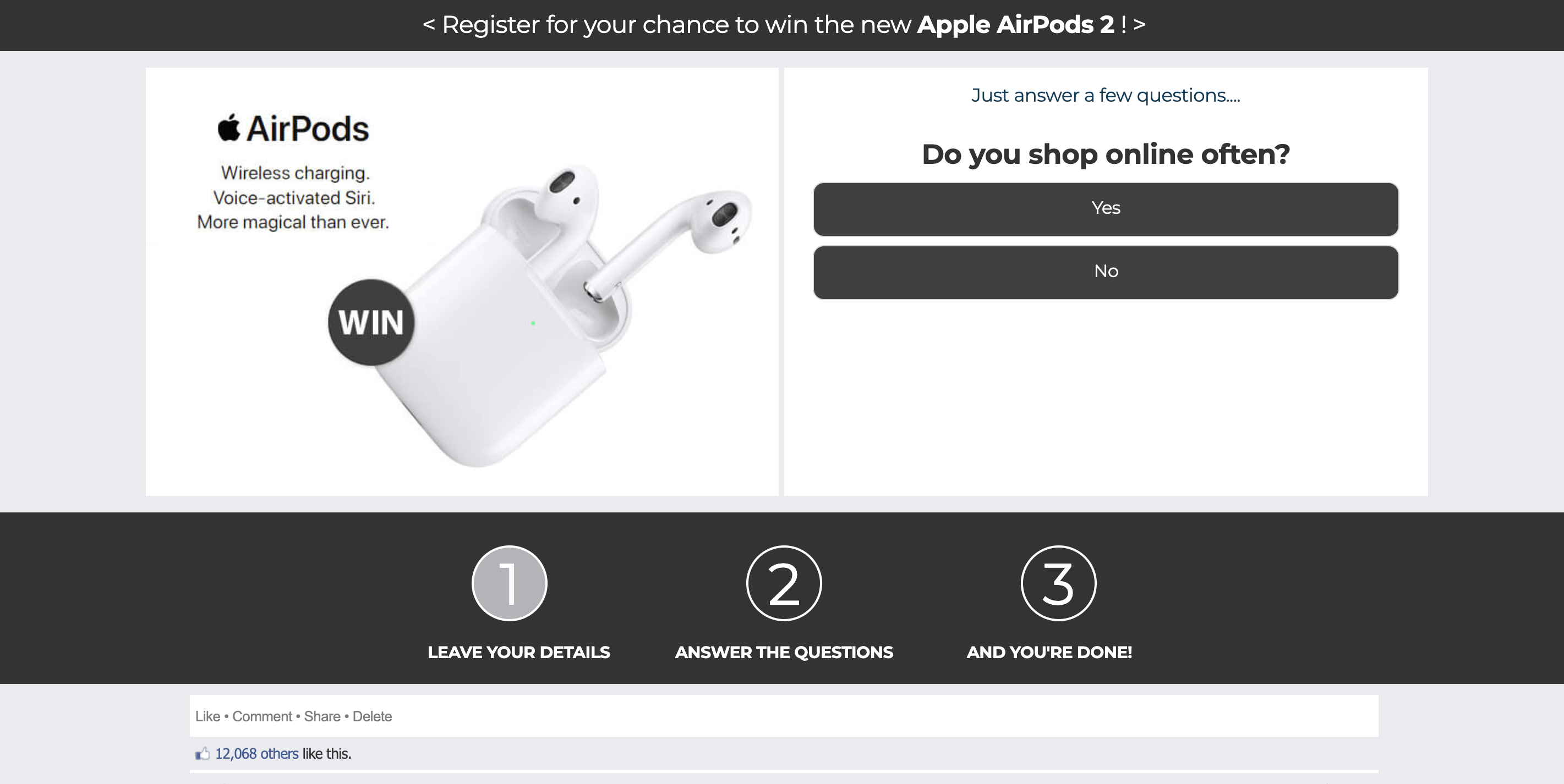 | Offer Name: | NZ - Quiztionnaire - Airpods 2 FB - (CPL) |