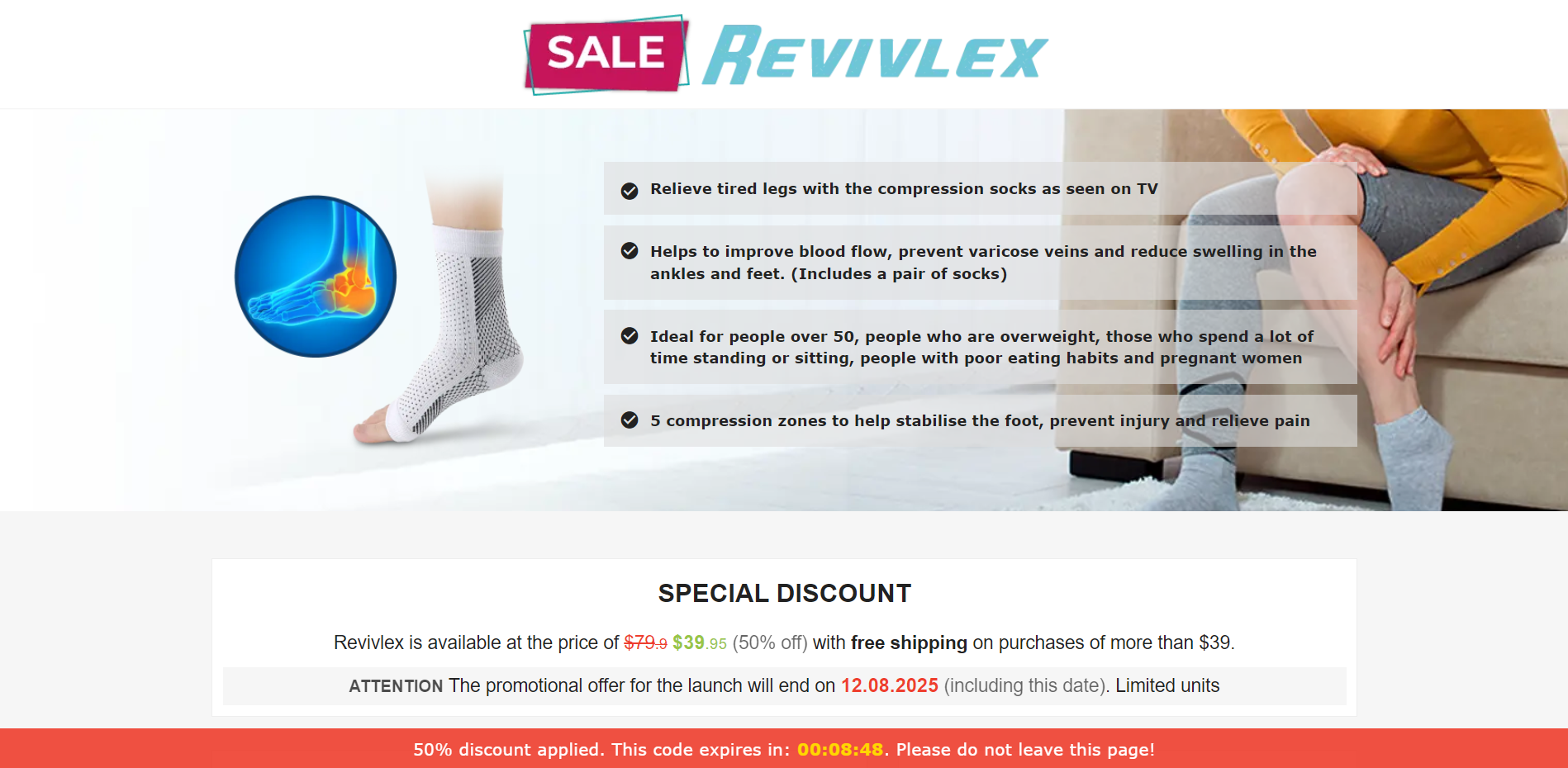 | Offer Name: | [WEB+MOB] Revivlex – Compression Socks /International (112 GEOs) CPS *FB/TT/Google/Taboola Pixel* [Approval Required] |
