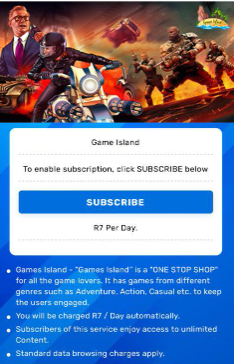 | Offer Name: | [MOB] OW - Games Island /ZA [MTN] - 2 click |