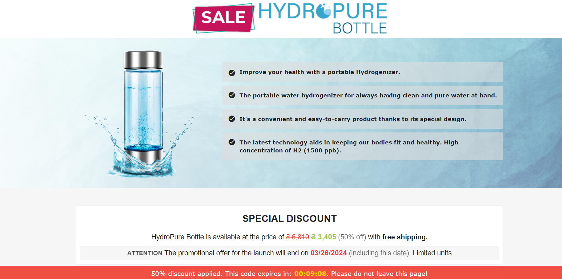 | Offer Name: | [WEB+MOB] Qinux HydroPure Bottle /International (112 GEOs) CPS *FB/TT/Google/Taboola Pixel* [Approval Required] |