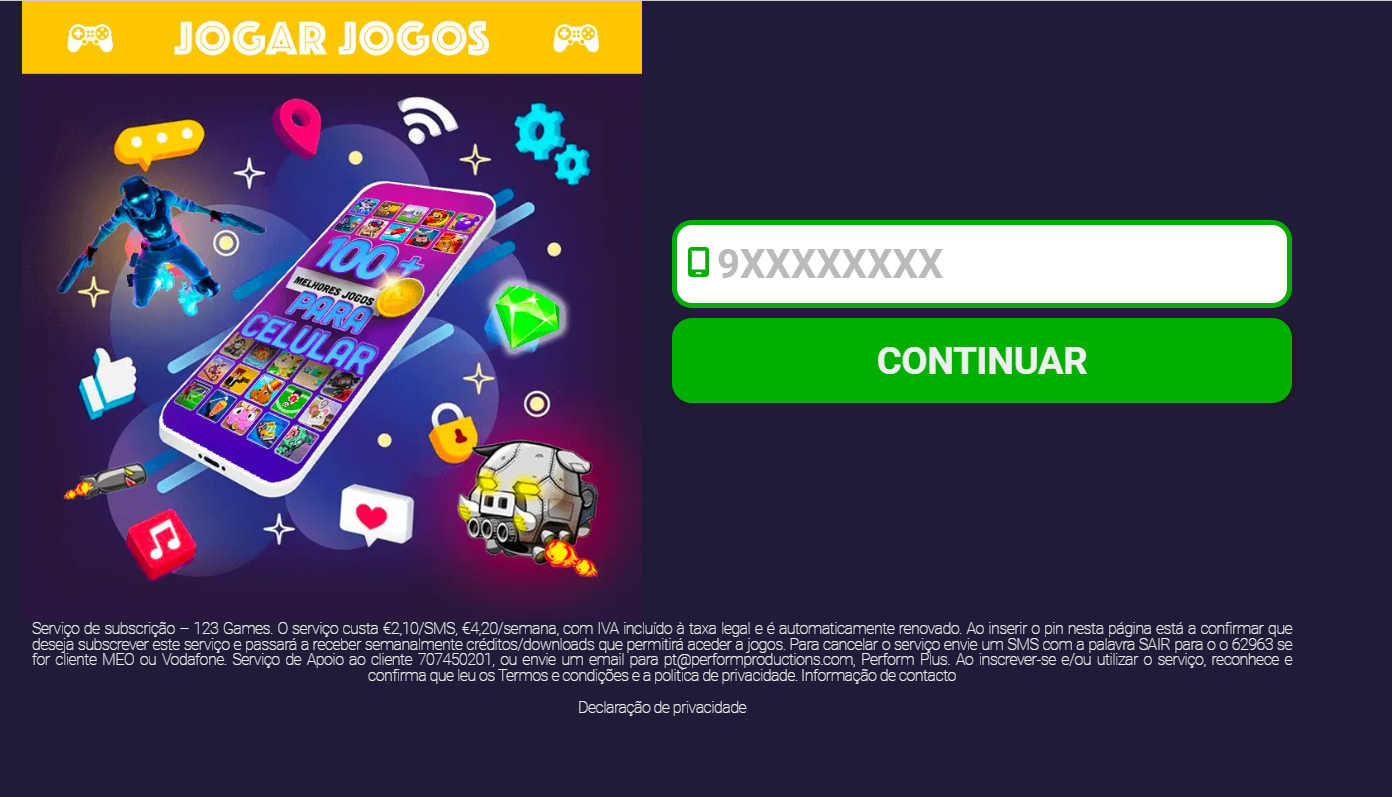 | Offer Name: | [MOB] 123gamez - Play Games /PT [VODA, MEO] PIN |