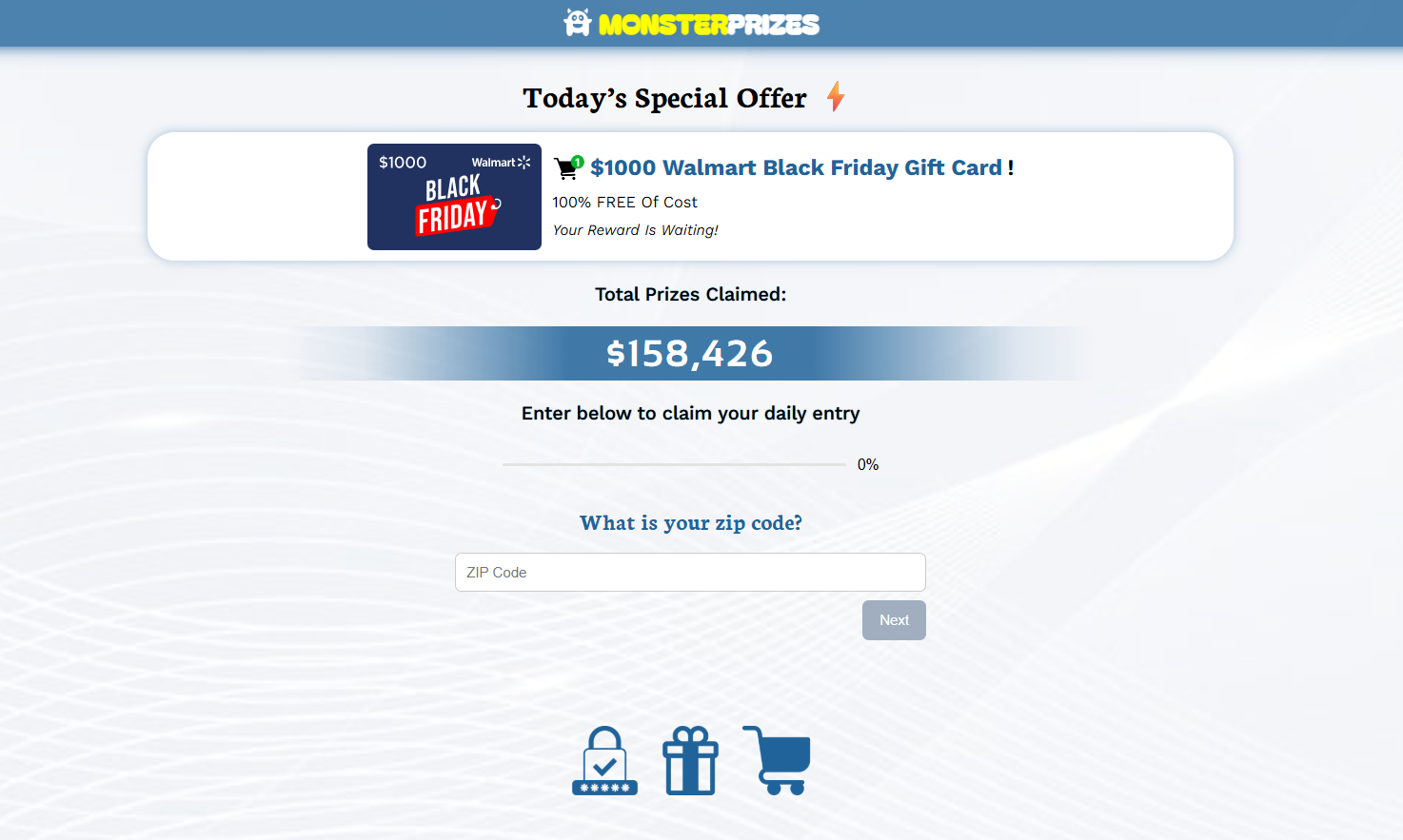 Offer Name: MonsterPrizes - $1000 Walmart Black Friday Gift Card - US