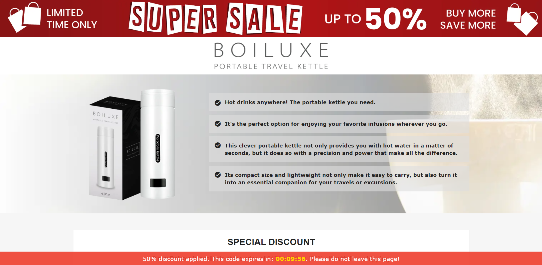 | Offer Name: | [WEB+MOB] Qinux Boiluxe – Portable Travel Kettle /International (112 GEOs) CPS *FB/TT/Google/Taboola Pixel* [Approval Required] |